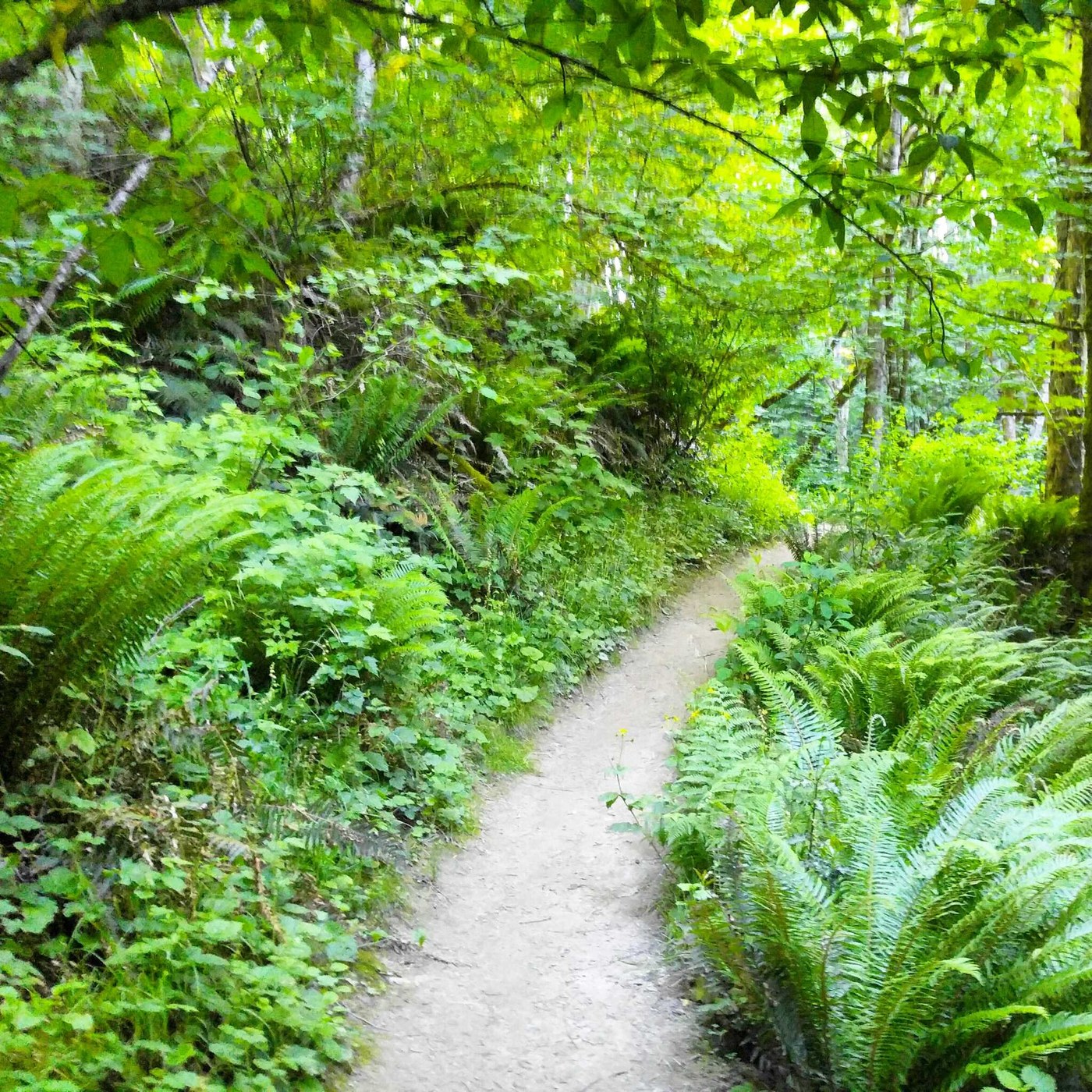 I parked nearest to the kids play area and started my walk. I completed the orchard loop, walked the paved seminary path, took the grotto trail down to the water and the North trail back up from the beach. The grotto and North trails were lush and green and they almost made me forget this was an urban hike. The trails were in excellent shape (no mud).