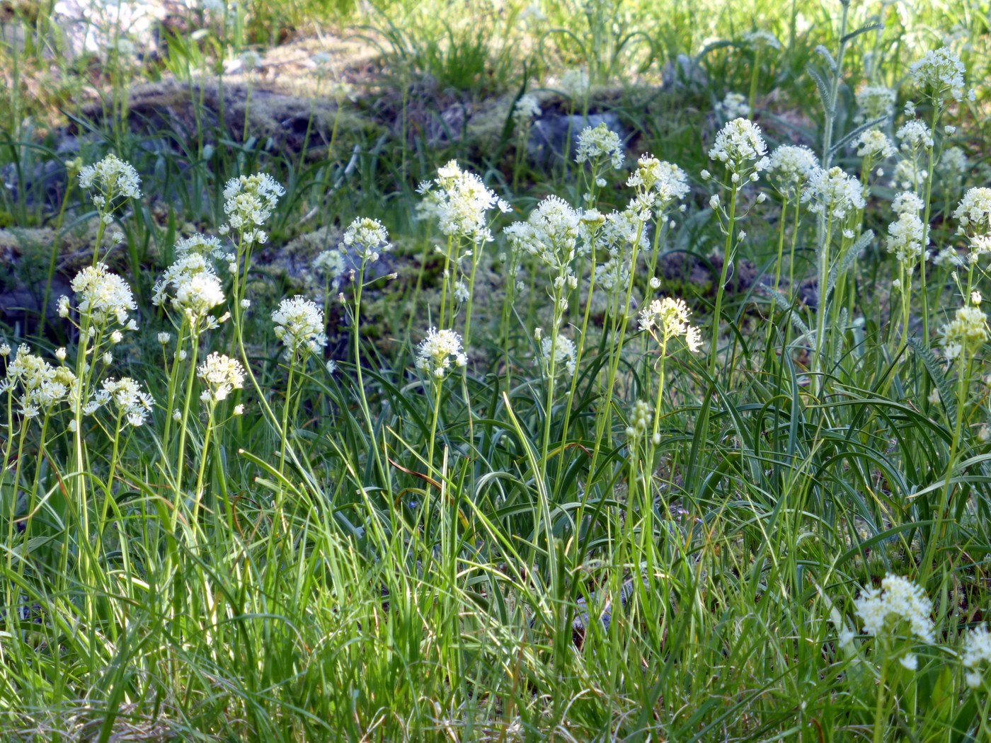 This is a great little short hike that offers some lovely views along the way of Colonial and Pyramid Peaks, and once at the top down to Diablo Lake. The trail climbs gently but steadily, starting out in shaded forest with ferns, moss and vine maples. This soon changes to more open and drier terrain, with a lovely little wildflower meadow, now blooming with meadow death camas, paintbrush, and little saxifrages. There are lots of little benches along the way, several with great views of the surrounding peaks. While the trail is well-groomed, there are some sections where is is a bit rocky; sturdy walking shoes are a plus. There is a smallish tarn about halfway up which later in the season is a breeding ground for mosquitos, bit today was clear and still, not a bug in sight.