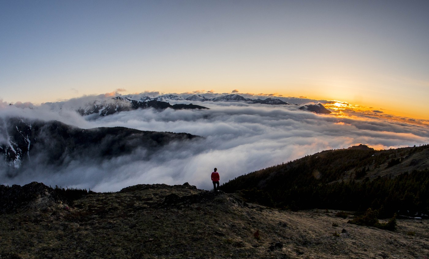 After splitting off with them, I ran down the road a little less than a mile and hopped on the Little Quilcene trail, followed this up Dirty Face Ridge (stay right at the fork), and eventually back to the top of Townsend. Back with plenty of time for dinner and for the clouds to dissipate revealing one of the best inversions I've seen. Roundtrip, my run was a little under 10mi with 3400ft of gain. Total distance for the trip is about 18mi and 6400ft gain - I'd love to do the full thing as a run when the snow melts out and tag on Welch Peaks or maybe Buckhorn and Marmot pass.