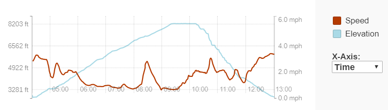 From what we saw, we were the first to top out in the morning at 9:20am after 4hrs and 50mins total between camp and the summit. The push to the false summit was very, very steep. We had microspikes and ice axes. Crampons would have been more useful for ice and the really slushy stuff, but spikes worked fine provided we were aware of our weight and had our ice axes out in case we needed to self-arrest. The final ascent was long, as we were tired, but the view when we topped out was absolutely stunning. Stay back from the ledges, as they were very corniced out and dangerous.