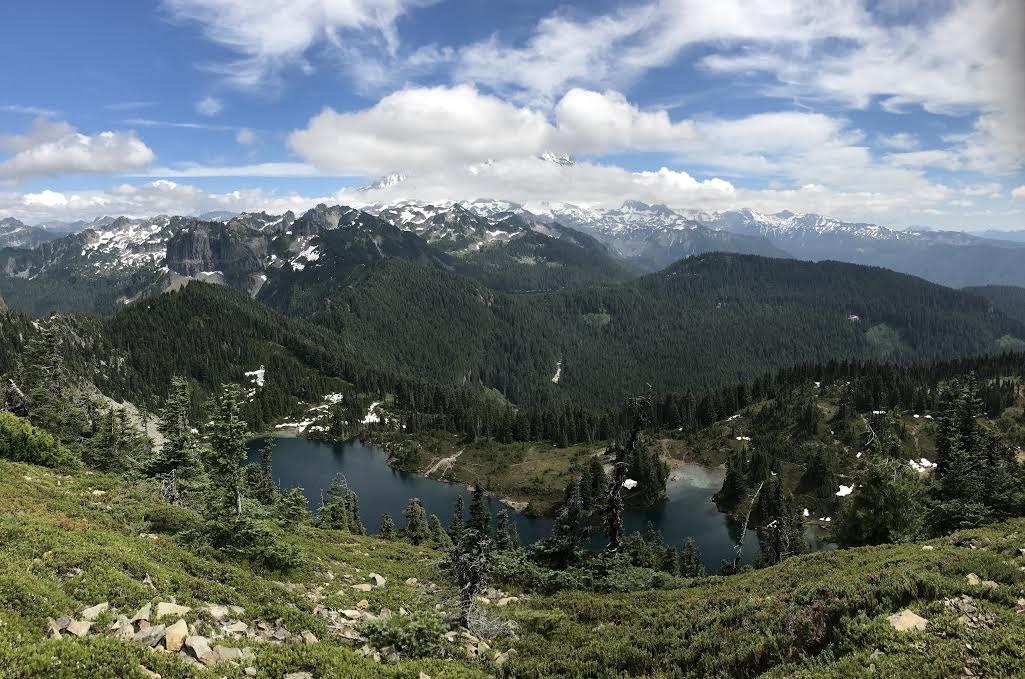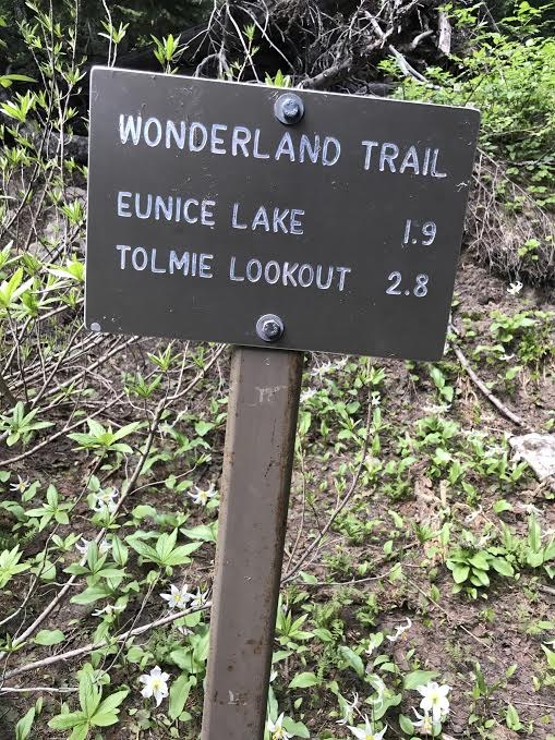 Take in the sights of Eunice lake, Rainier on the side and blooming beargrass. On a lucky day one might see St. Helen's. We were lucky for a few minutes when the clouds cleared up on Helen's. The clouds did not budge from Rainier though. Even so, the views were like none other. Huge rewards for a short and straightforward hike.