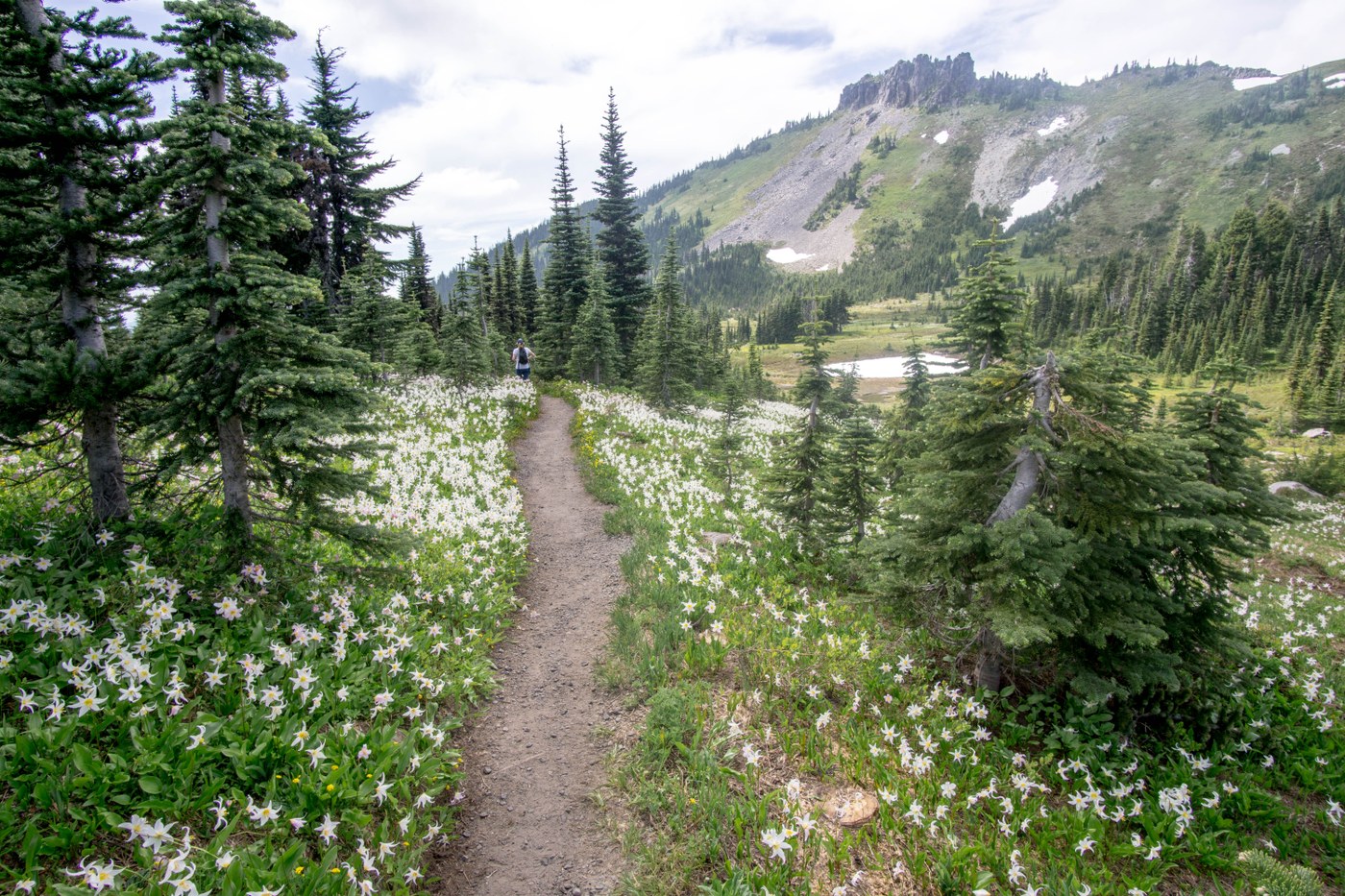 This is one of my new favorite hikes in the Mount Rainier area. It literally has everything from beautiful forest, to waterfalls (Spray falls), to wildflower fields and unobstructed views of Mount Rainier. The first two miles to the falls is a gradual climb which went by quite quickly. We were warned about a bear being near spray falls by a couple kids but did not see it ourselves. The climb from spray falls to spray park is the steepest park of the trek but is short of a mile. Once you get to the wildflower fields you no longer feel the burning in your legs as it is beautiful. Avalanche Lillies are blooming right now in full force and it looks like others will follow shortly. Near the end of Spray park there are a number of small snowfields to cross which were easily passable. We made it to between Spray park and Seattle park then took the climbers path towards observation rock which was gorgeous. Unfortunately we stopped short of observation rock although we regretted this later (following a google image search). Overall we did about 10 miles not included the extra mile to get to our car from the trailhead. This is a great time of year to do this hike. Overall the trail was moderately busy but nothing like the more populated areas of Rainier.