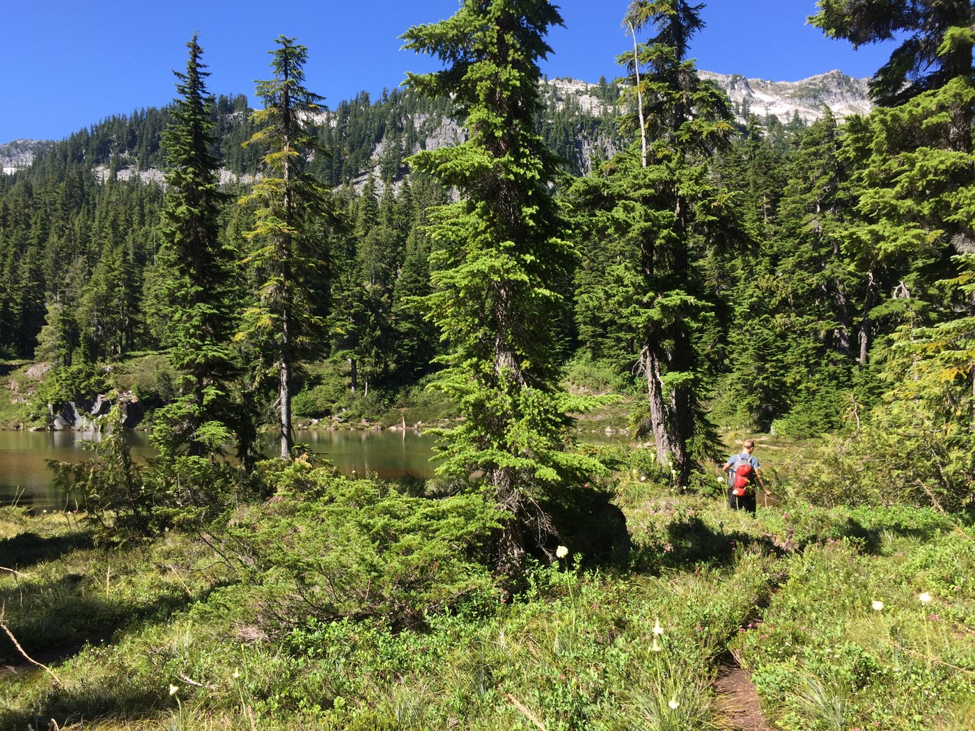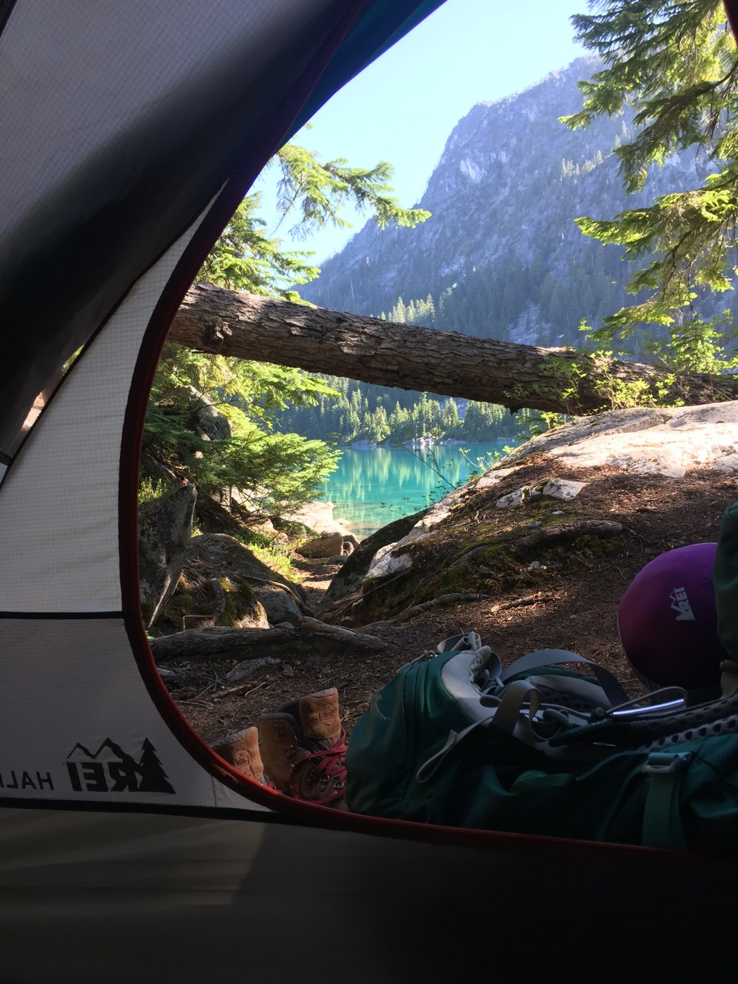 After you reach the first lake (and cry tears of joy), the area becomes a mess of social trails. It's pretty much a choose-your-own-adventure at this point. My group stumbled across Lake Ilswoot after some exploring, and decided it was by far the most scenic of the lakes for camping. There are only about 2-3 available camp sites around Lake Ilswoot at the moment (some fellow campers informed us that there are usually more, but the water level is so high that the other sites are currently submerged), I would definitely recommend snagging one if you can!