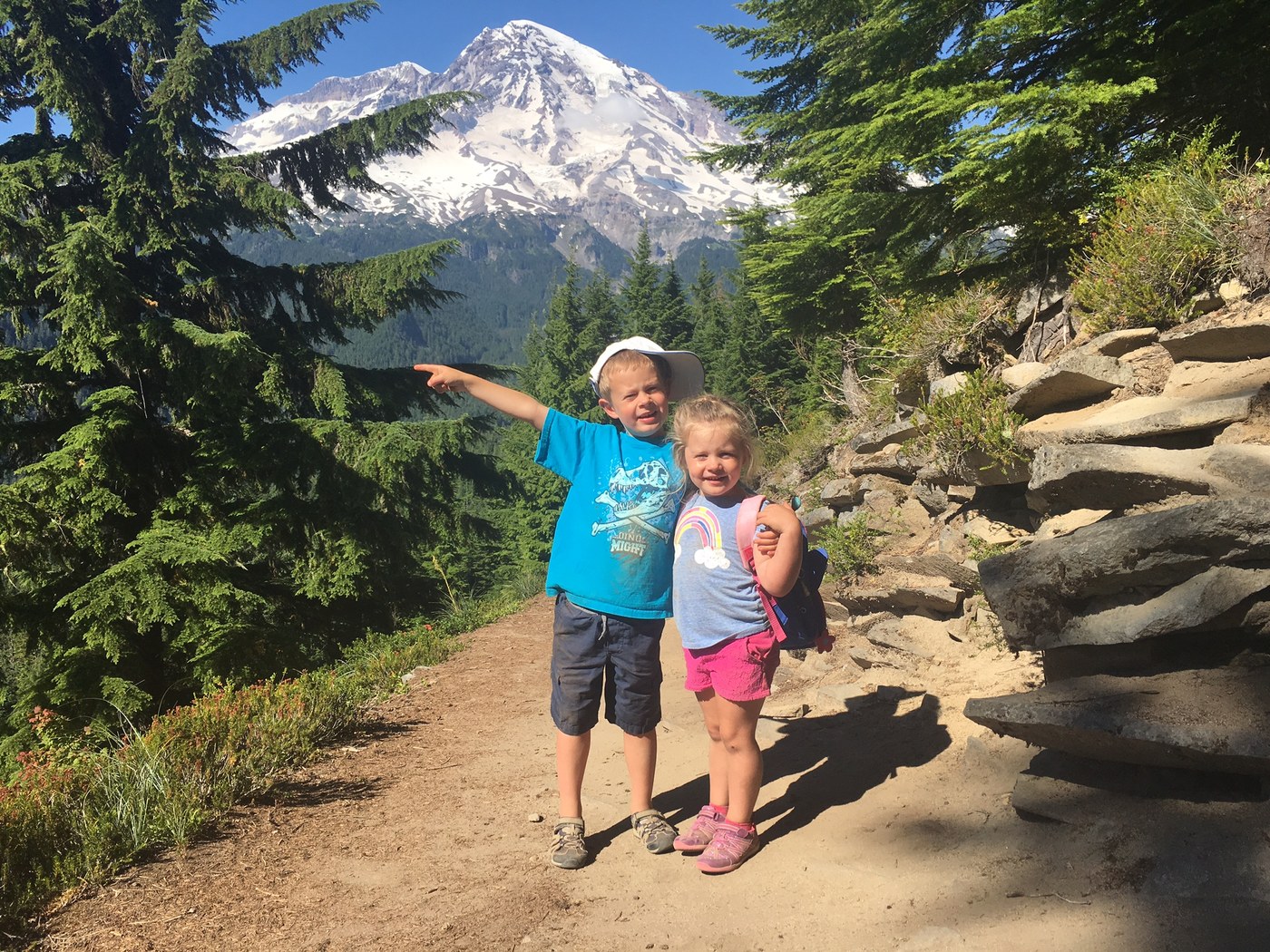 A beautiful hike through the woods. Only one view of Mount Rainier (as the description notes) but it's a spectacular one. I hiked it with my 3 yo and 6 yo and they loved it, though it took quite a bit of coaxing to get them up the switchbacks. It's also a longer hike than noted in the trail summary. It's 4.9 miles from the start of the Rampart Ridge hike and then back to Longmire, so with the little bit of Trail of the Shadows, it's probably about a 5 mile hike. With little ones and a ton of breaks to get us up the steepest sections, it took us about 6 hours. My kiddos definitely earned their sundaes at Longmire!