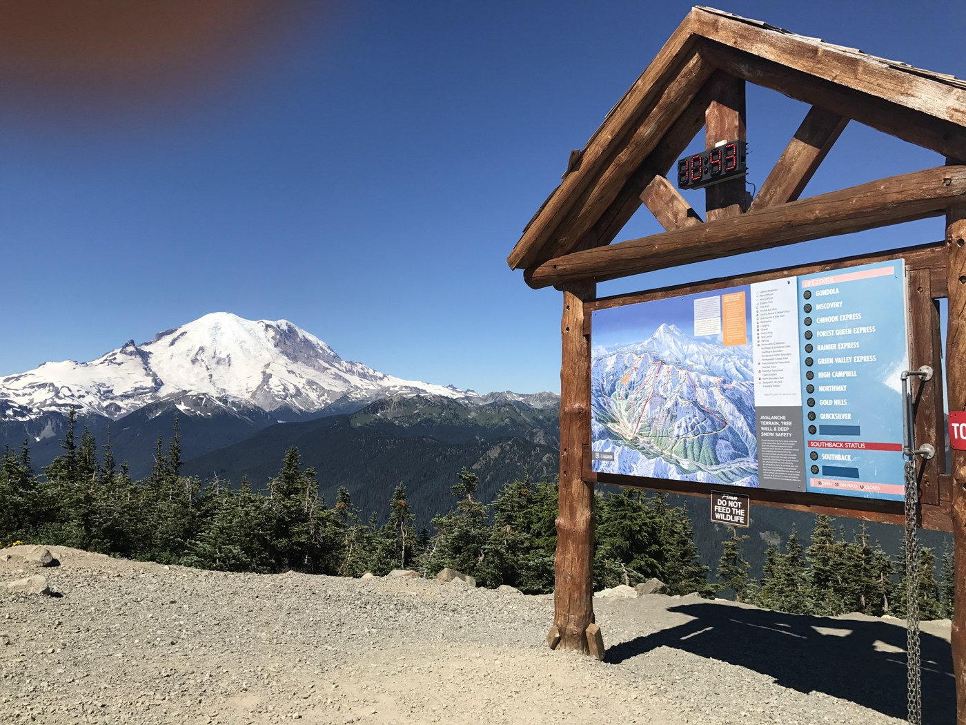 Arrived on a Friday (in July) and camped out in our trailer in Lot B for $35. If you go on a weekend and want to Park close/in Lot A-- get there early. Other than that there is lots of free parking available and no pass required. We rode the Gondola up to the summit. Bought a one-way pass which is a pricey $23 or $33 for unlimited day use. The views on a clear day are spectacular. The first part of the Trail is out in the open, exposed, and well maintained. Lots of wildflowers in bloom. With lots of wildflowers came lots of bugs. Just keep moving and they're ok, but you'll here a lot of buzzing along the way. The Trail was pretty dry and dusty. Lots of hikers with dogs off their leash, a couple mountain bikers making their way up, and other hikers going up or going down along the way. We passed by Henskin Lake, went over a couple streams, saw the opening to the mine shaft, and hiked through the woods. We choose to do summit to base to make it easier on the kids. Our trip was 4.7 miles. Bring water,bug spray, and sunscreen. There are places to get a bite to eat or a drink at the base and the summit. You can obtain a paper trail map at the base or download it off of the Crystal Mountain app.
