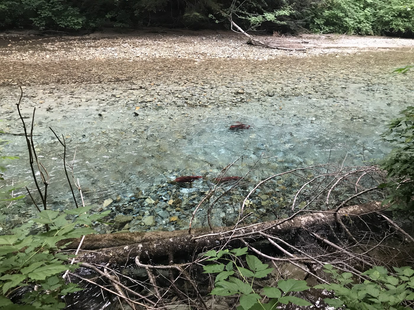 - Keep your eyes on the river as you're walking by, we saw spawning Sockeye salmon!