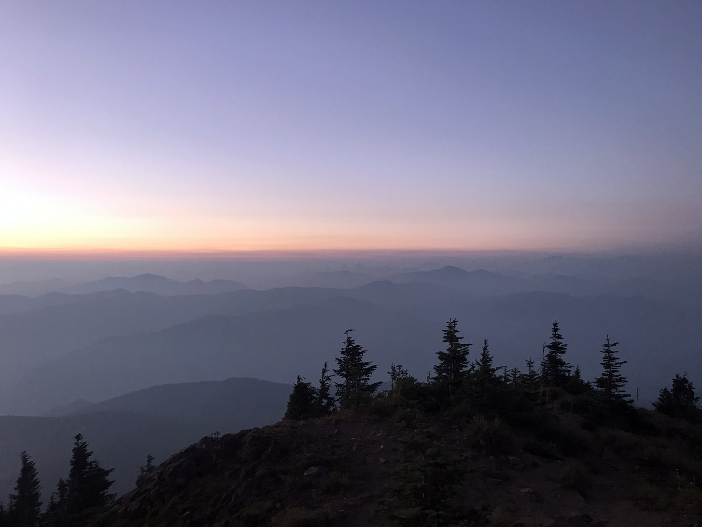 Shortly before the lookout you'll pass another moderately well-established campsite, but we pressed on with hope. Just as the sun was setting—turning the smoke layer a brilliant salmon color—we hit the top of the butte and hustled to the lookout. A lookout that was empty. A lookout that was unlocked. OUR LOOKOUT!