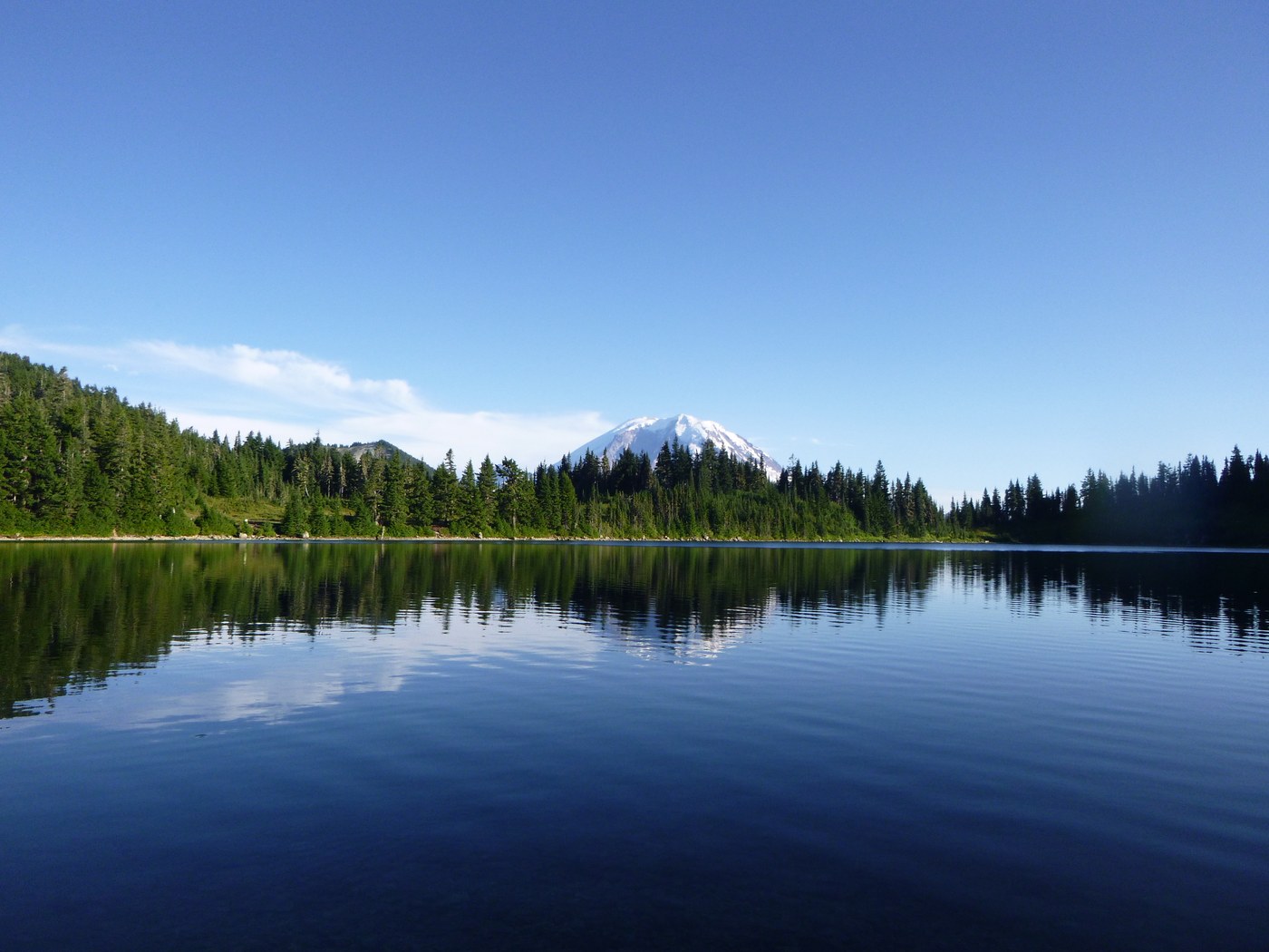 Fri, Day 1: Road to the trailhead was very rough, as others have mentioned. High clearance vehicles recommended. Hiked up mid-morning to the lake. Saw a few hikers, but mostly had the trail to ourselves. Trail was in great condition. It had some steep spots but overall it felt pretty good. Met some WTA volunteers at the lake who were working on bits of the trail past the lake over the weekend. Found a large camping spot at the end of the lake. Weather was great, there was a breeze so no bugs (even in the trees) but clouds rolled in later in the evening. We had a light sprinkle to heavy rain all night.