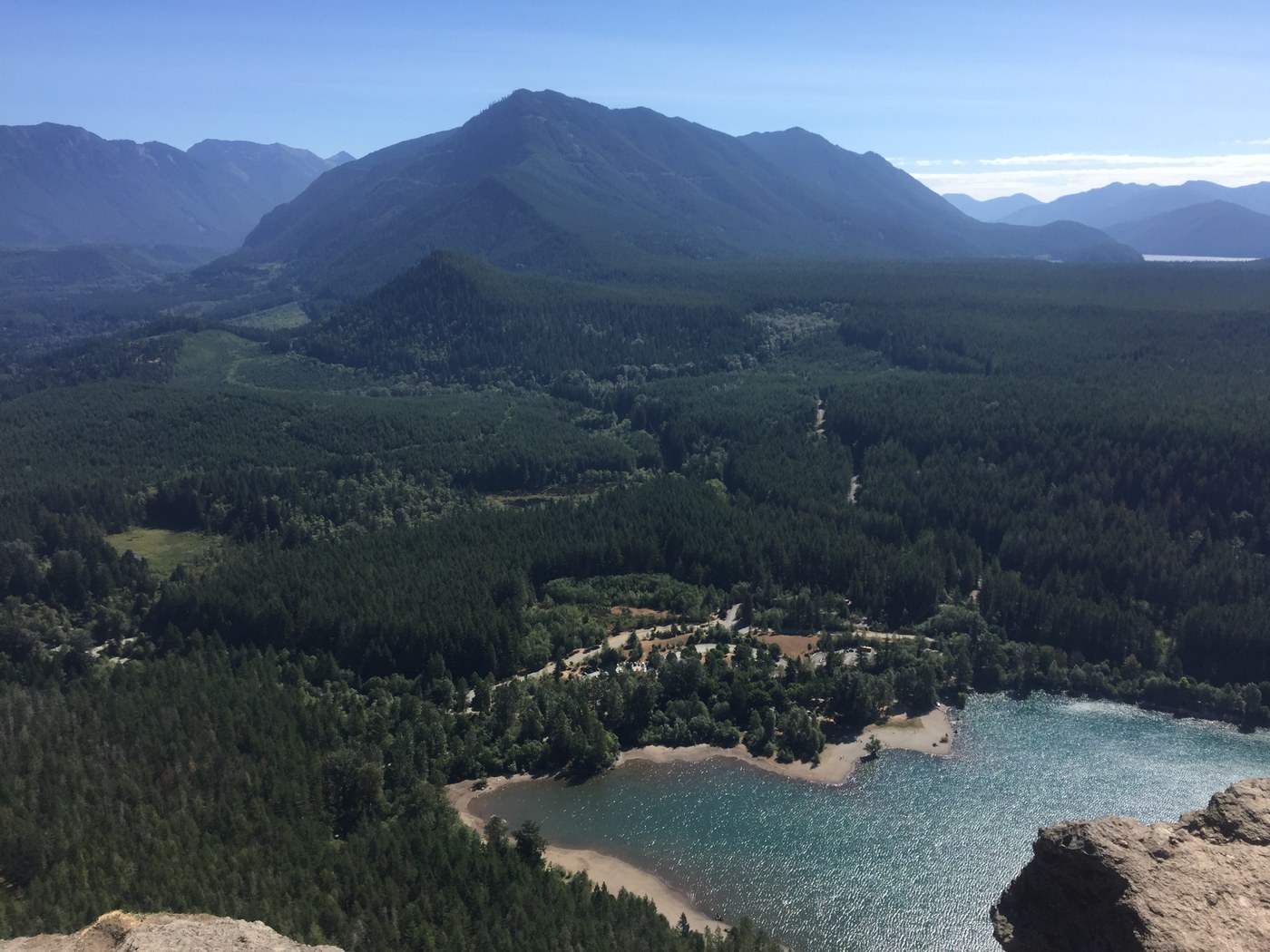 Arrived at the parking lot around 10:15 am on a Wednesday with plenty of parking (multiple huge lots). The lake was serene and beautiful. I had very limited time so pushed myself to hike hard up the continuous incline. I'm slowly getting into shape and was amazed to make it the 1.9 miles to the top in 50 minutes. The forest was mostly younger trees so I didn't mind rushing through. The advantage of the young forest was you could see the mountains off in the distance much of the hike. The trial was partially shaded with folks of all ages and abilities, though it is a continuous upward climb. The view at the top was beautiful and I wish I'd had time to stay but it was time to head back to Seattle to pick up my kiddo. I made it down in 35 min and back to the city in 45 min.