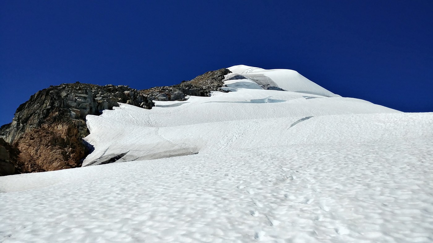 Trail: Trail is in good condition all the way up to the glacier. Heavily crevassed at this point, but manageable to find a route through. For the summit push, see notes below.