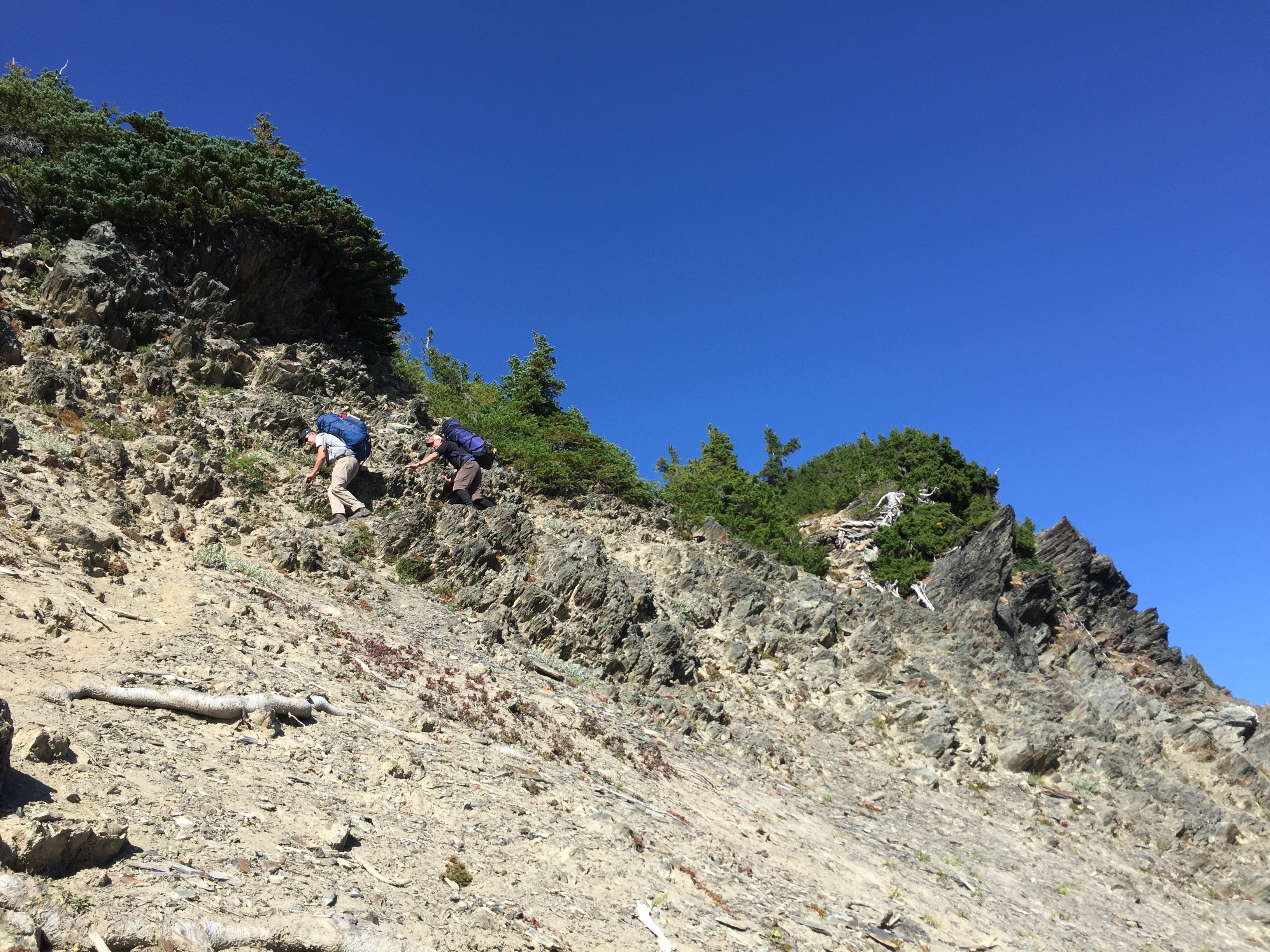 After dropping the packs and doing some recon, we finally found the way, but it was a frustrating and demoralizing half hour. The CCC trail itself is wonderful and gorgeous to walk and it was quick work to Dodger Point.