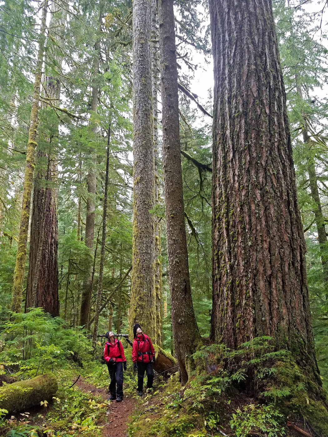 About 1/2 mile from the turnoff for Goldmyer Hot Springs the trail traverses a spectacular old growth Douglas Fir forest for a about 1/4 mile. There are dozens of huge tall handsome trees. This is one of the best groves that I've seen.