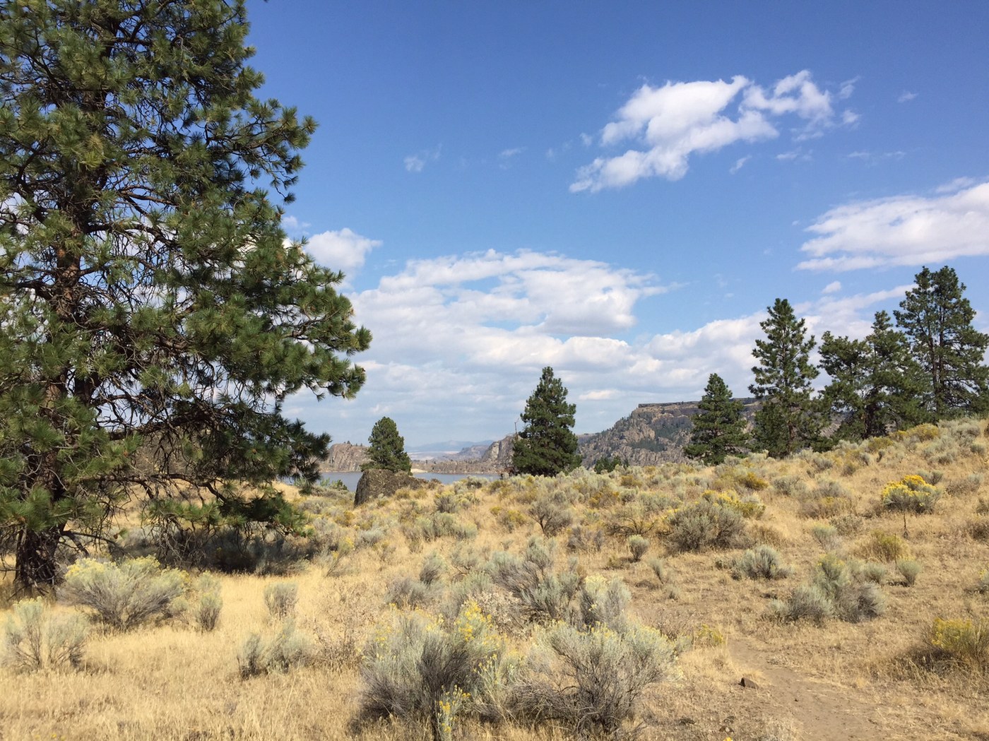 Since Northrop Canyon was not successful I still had to exercise the dog. We had done Steamboat Rock the day before and noticed, while on top, the beach below. Headed out from m the State Park and walked over to the day use area and then up the access road to the camp sites. There were unfriendly campers there so we headed away from them. Headed back towards the rock but on the beach. The dog did a bunch of swimming. It was so beautiful and the area is stunning. Lots of boats out with fishermen in them. We didn’t take the access road on the way back and explored the trails below the rock to get back to the park. On the way back is the only time we were warned by a young rattlesnake to pay attention the whole weekend. I love this area and will be back for spring wildflower season. The state park is a good place to stay. Be warned though. You have to pay to shower.