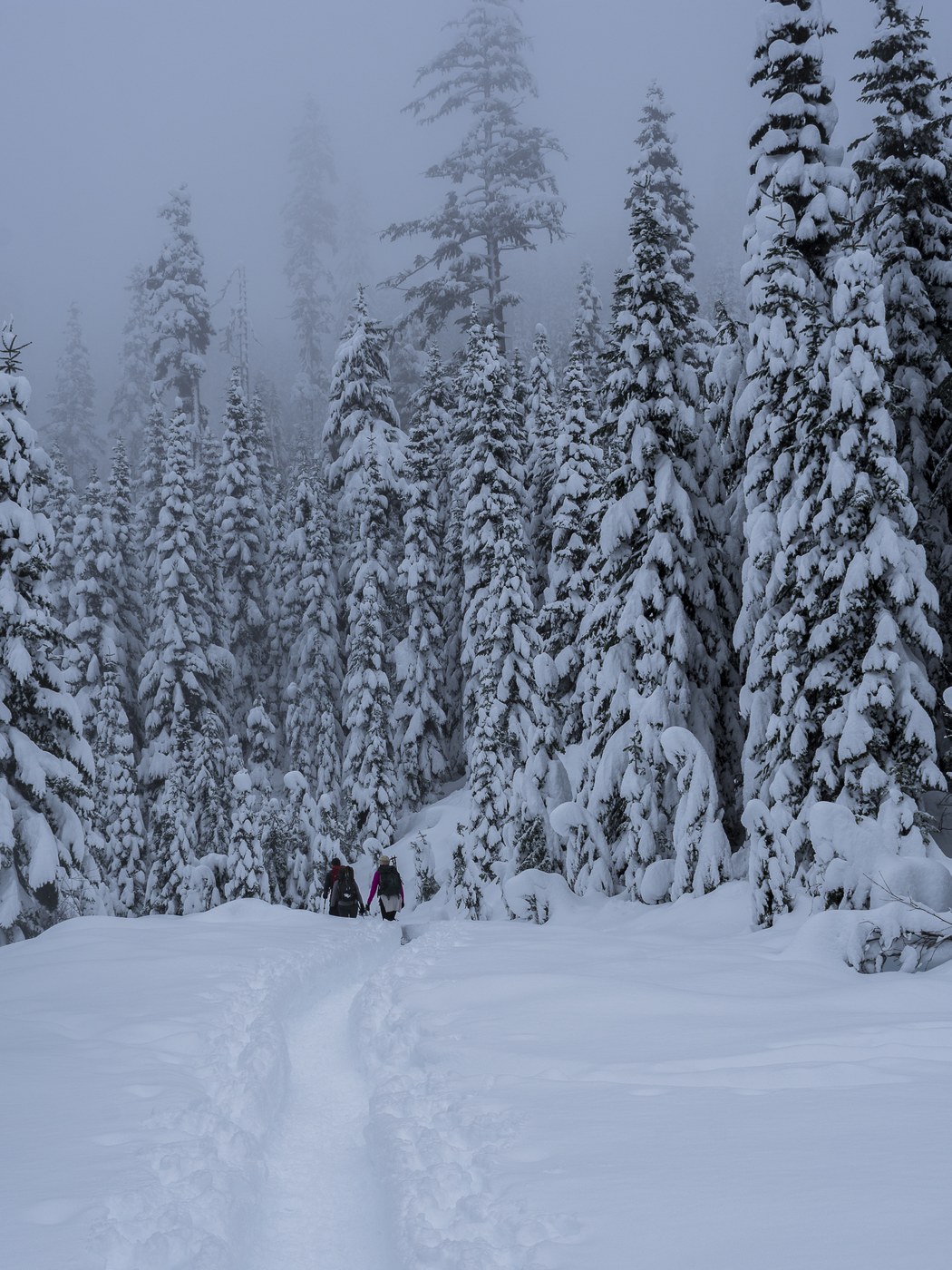 Did a snowshoe trip up to the first Kendall Peak Lake. Trail is good and easy to find with a lot of fresh powder but a solid trail all the way up to the lake. The trail has a good amount of uphill and you can work up quite a sweat so make sure you have layers going up. Unfortunately it was overcast the whole time so no good views but still good to get out.