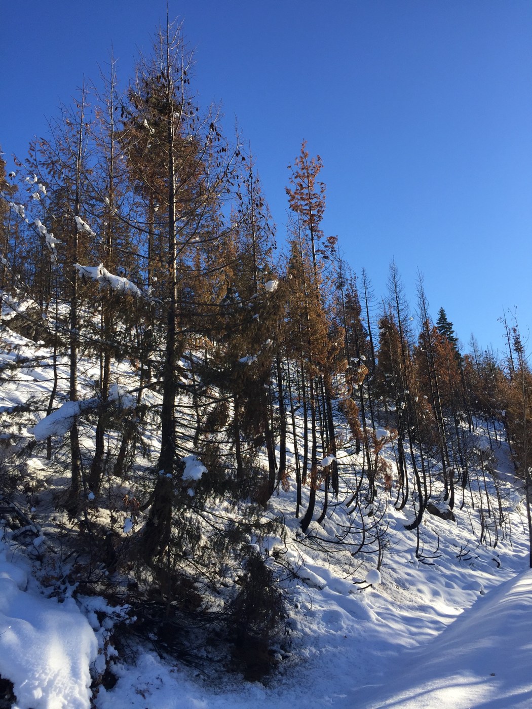 The mountains of central WA are in glorious condition right now and this snowshoe/ski offers spectacular unobstructed views of them. The Jolly Mt Road takes off from the Salmon la Sac Road about 14 miles north of Roslyn. It is on the right about a half mile past the Cooper Lake Road that goes left. You start at the huge Snopark and ski or snowshoe up the old logging road. In 40 minutes, I got to the great views to the west and north. I then continued on to the large flat at 2 miles. There was no one else around today and I was soon past old ski tracks in fresh snow that glittered in the sun. There is only about four inches at the start and maybe 18 inches where I turned around. Given enough time, one can go all the way to the top of Jolly Mt. You must have safe conditions though, as there are avalanche slopes higher up the road and on the mountain itself.