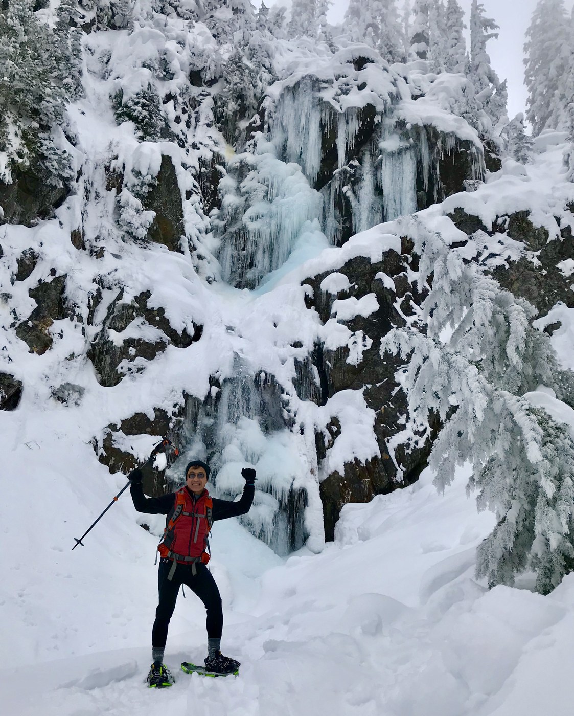 Started at 8:30am and wandered out onto the snow packed trails. There's a lot of different tracks but they all kind of lead in the same direction. There were about a dozen people out there, some on snowshoes others on skis. Walk along the South Fork Snoqualmie River for a while before moving into a couple areas where there's clearing and giant boulders covered in snow. Found a frozen waterfall and that's where we decided to turn around and head back. Spent about 1.5 hours hiking in and out. Didn't make it all the way to Source Lake but easily could have gone the whole way. A very beautiful day! It was about 25 degrees at 8:30am and I wore three base layers and a vest.