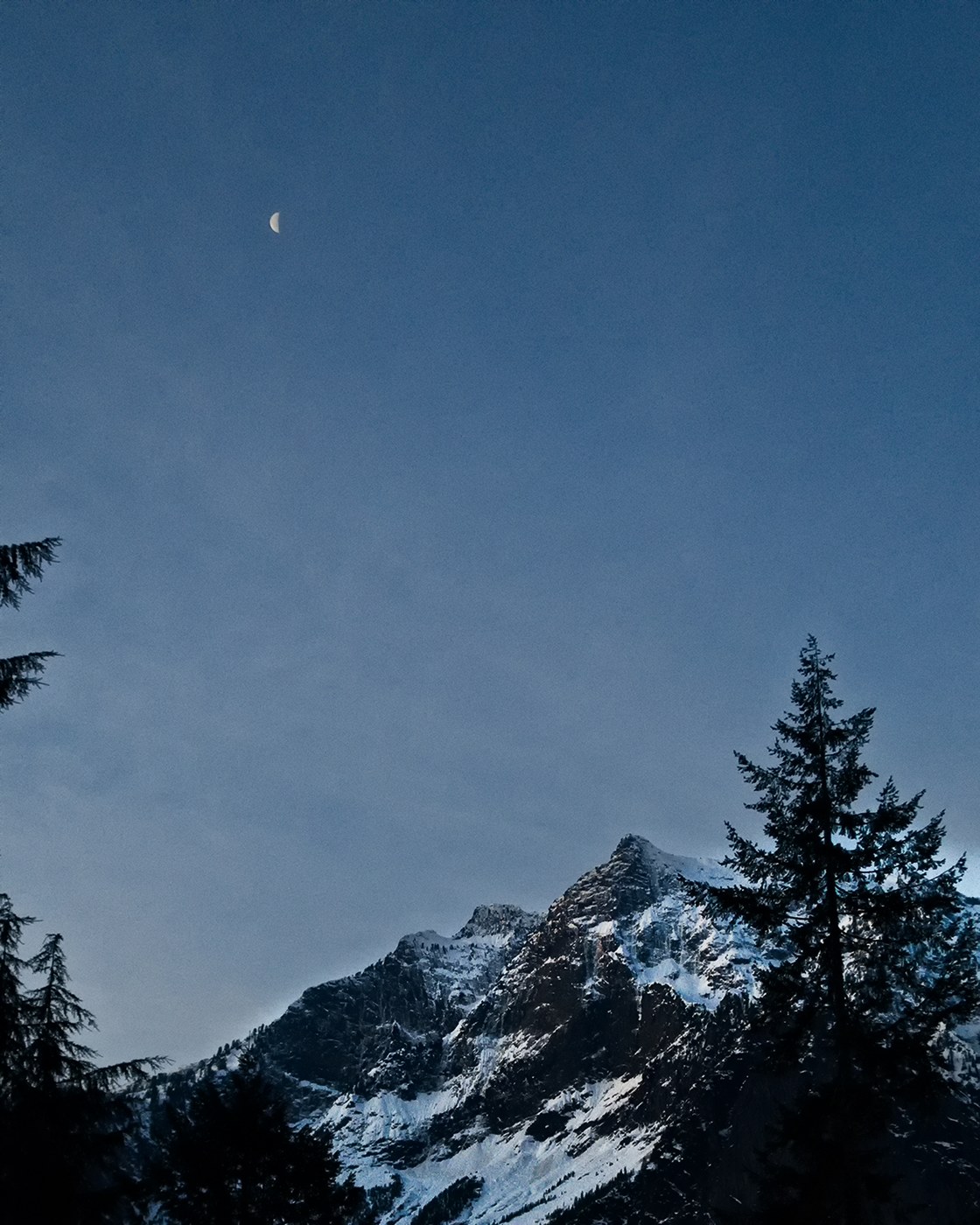 Mountain Loop Highway is open up to the pass. There was a lot of frost and some patches of black ice, and the bridges were sketchier as you'd expect. I had no trouble with my FrontWD compact manual driving carefully. I got to the trailhead shortly before dawn and twilight provided plenty of light for getting my boots on. There were 5 other cars, all at the Mt. Dickerman side of the lot.