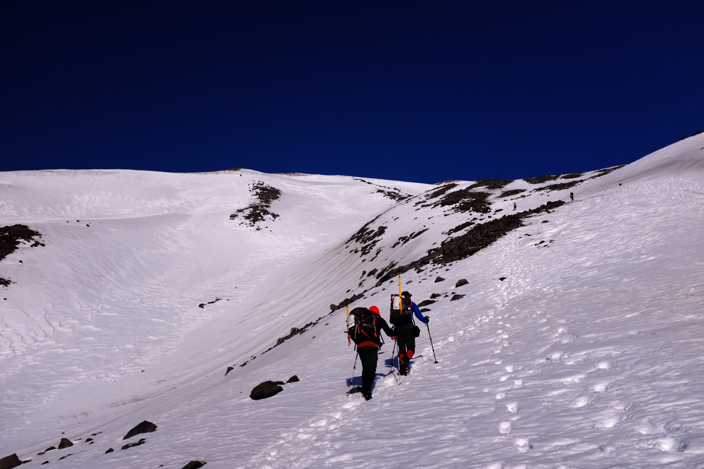 If you can hike this trail before the next round of weather hits - do so. I was initially a little worried since it was cold and windy at the trailhead. But up top it was perfect. The trail is in great shape and easy to follow and there are glissade paths a good portion of the way down. Started with snowshoes and a heavy coat but ditched them both after a mile or so. Steady hiking for a couple miles after and then threw on the crampons for the rest of the way. Started at 5ish and hit the summit by noon after stopping to take a lot of photos along the way. Back to the trailhead by five. If you're thinking about doing it. Do it. Do it now.