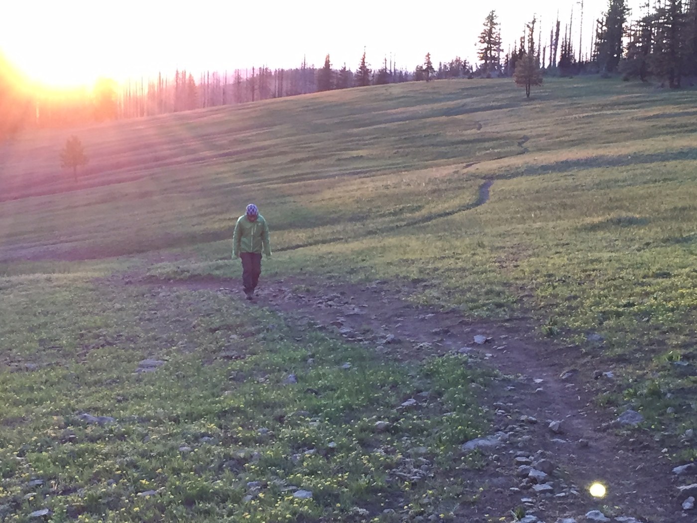 The first part of the trail was in excellent shape - up to around 5000' but at the ridge, the blowdowns began in earnest and it was difficult/impossible to follow the trail. We found a fine route anyway - and eventually ended at Indian Corral - five miles from the TH. We decided to make this our camp for the next two days and it was a great spot. On our second day, we saw a beautiful bear in the meadow below!