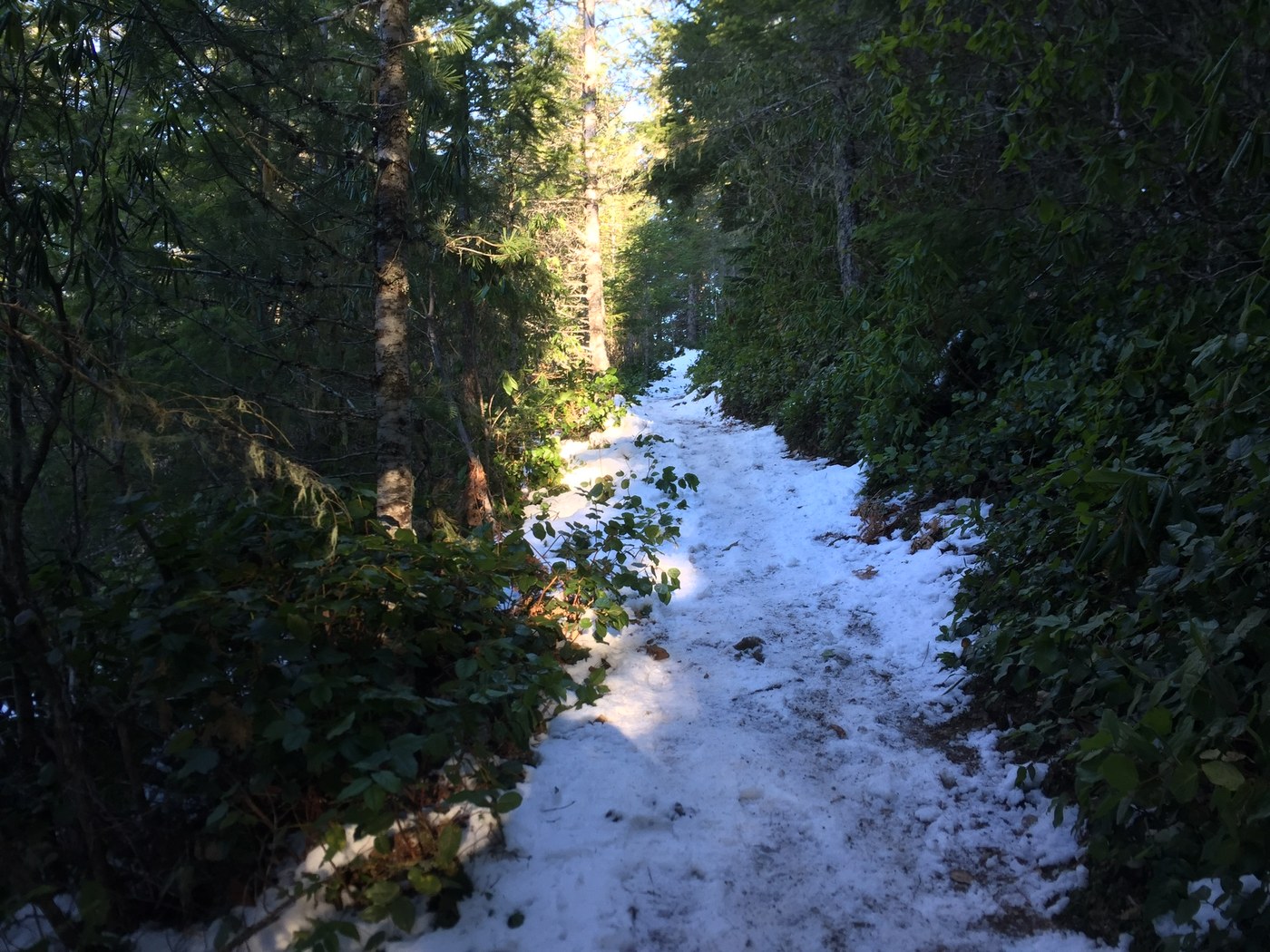 Did a quick training hike up Mt. Walker this morning so thought would share some pics. Beautiful morning. Gate closed at Hwy 101, so parked there and walked to the trailhead (~.3 Miles). Encountered packed snow and ice the last 1/2 mile to the peak, but did not need my micro spikes (it was worse going down...had to be a little cautious). Estimate temp at the top was ~25 degrees, with a slight north wind, so it was a bit nippy (and the snow was pretty crunchy!). Had 3 layers for hike up, and added a jacket at the top for the way down. Also had lower long underwear, ski gloves, balaclava, and an orange beanie in case any hunters were around!!! Beautiful day and views. Started at trailhead at 8:30 am (~10 cars at gate) and got back down at 11:15 am (~25 cars at gate and along hwy 101).