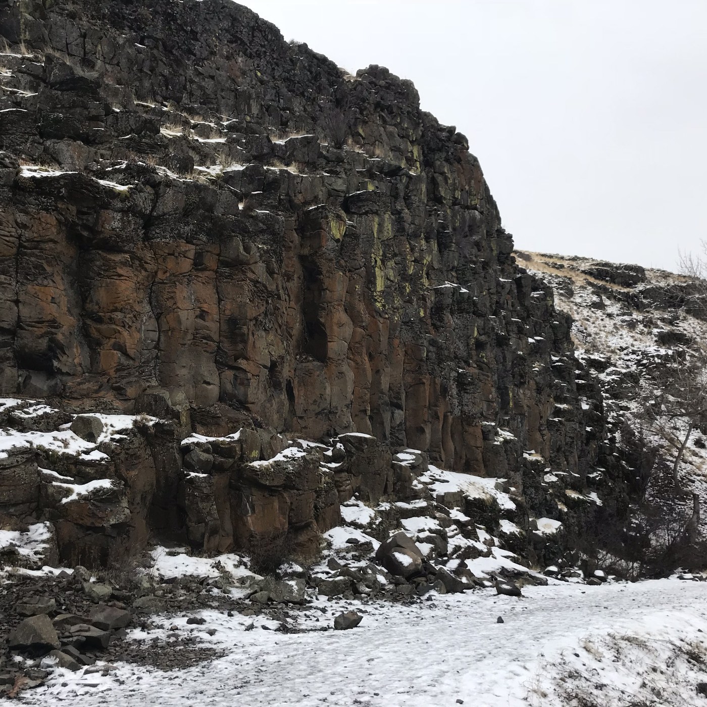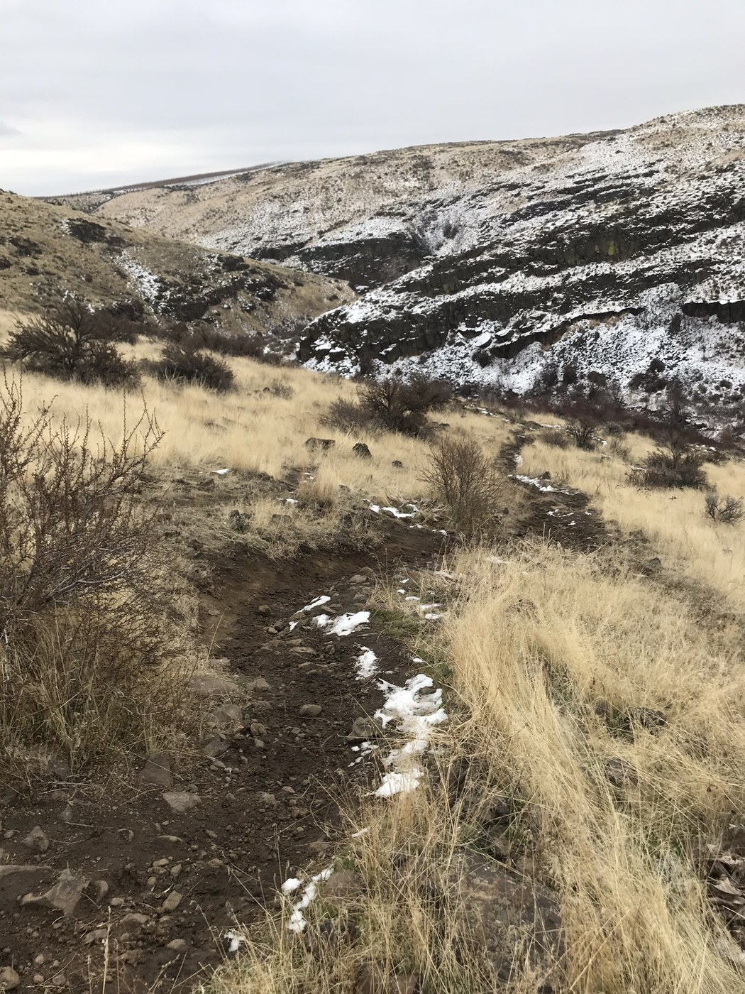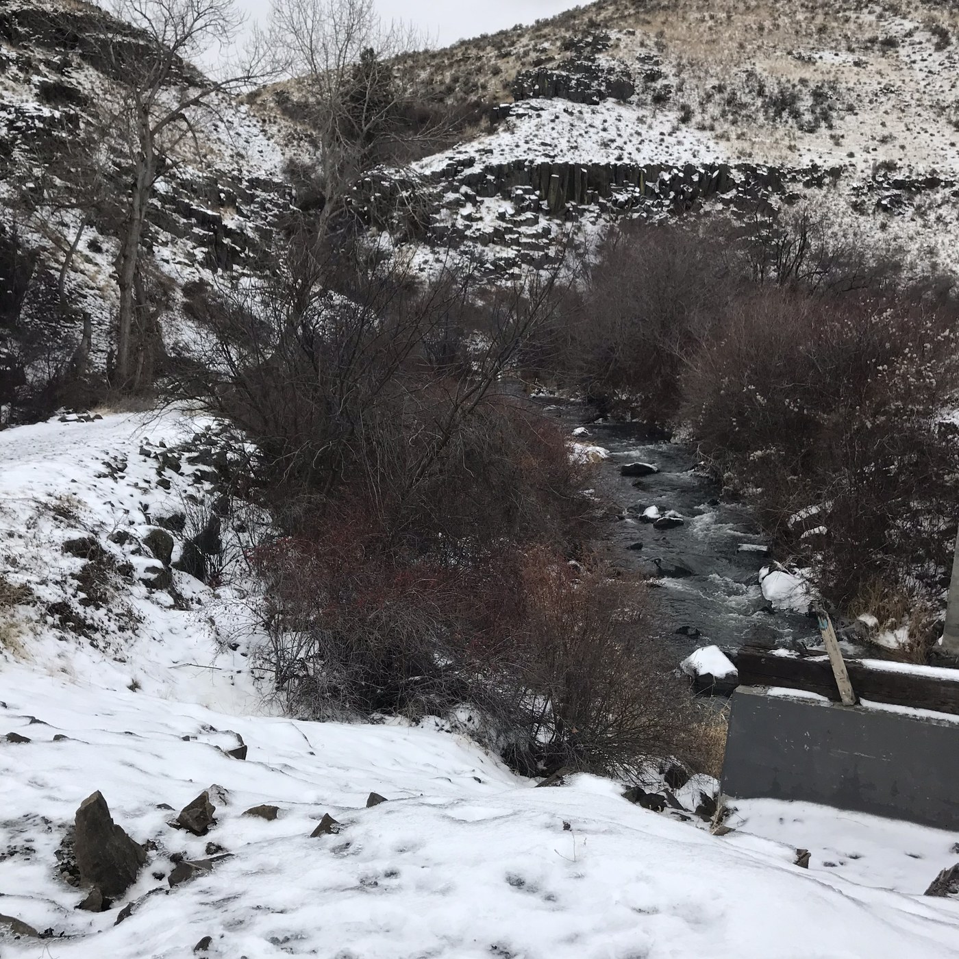 Beautiful New Year's morning hike on lower Cowiche Canyon trail beginning at the other entrance just off of Powerhouse Rd near the Fred Meyers. There were no recent trip reports posted after our recent freezing rain and so was unprepared in not being able to access the main trail which was almost completely iced over and pretty treacherous in some areas. Spikes would definitely have made it easier and safer. Not wanting to turn back home, I trekked carefully on the side banks through the crunchy snow (and was even was passed by a couple of gals in spiked running shoes) yet which was also treacherous in some areas as the slope to the creek is right there! There were a few parts of the trail that were not iced over. I slowly made it to bridge #8 (complete ice) and then went off trail to the right and up the winery trail. The winery trail was bare and frozen mud. Well worth taking it clear to the top after the disappointment of the iced over main trail. The creek was a gorgeous, deep blue and air crisp. A few grouse here and there but no signs of wildlife. One unleashed dog.