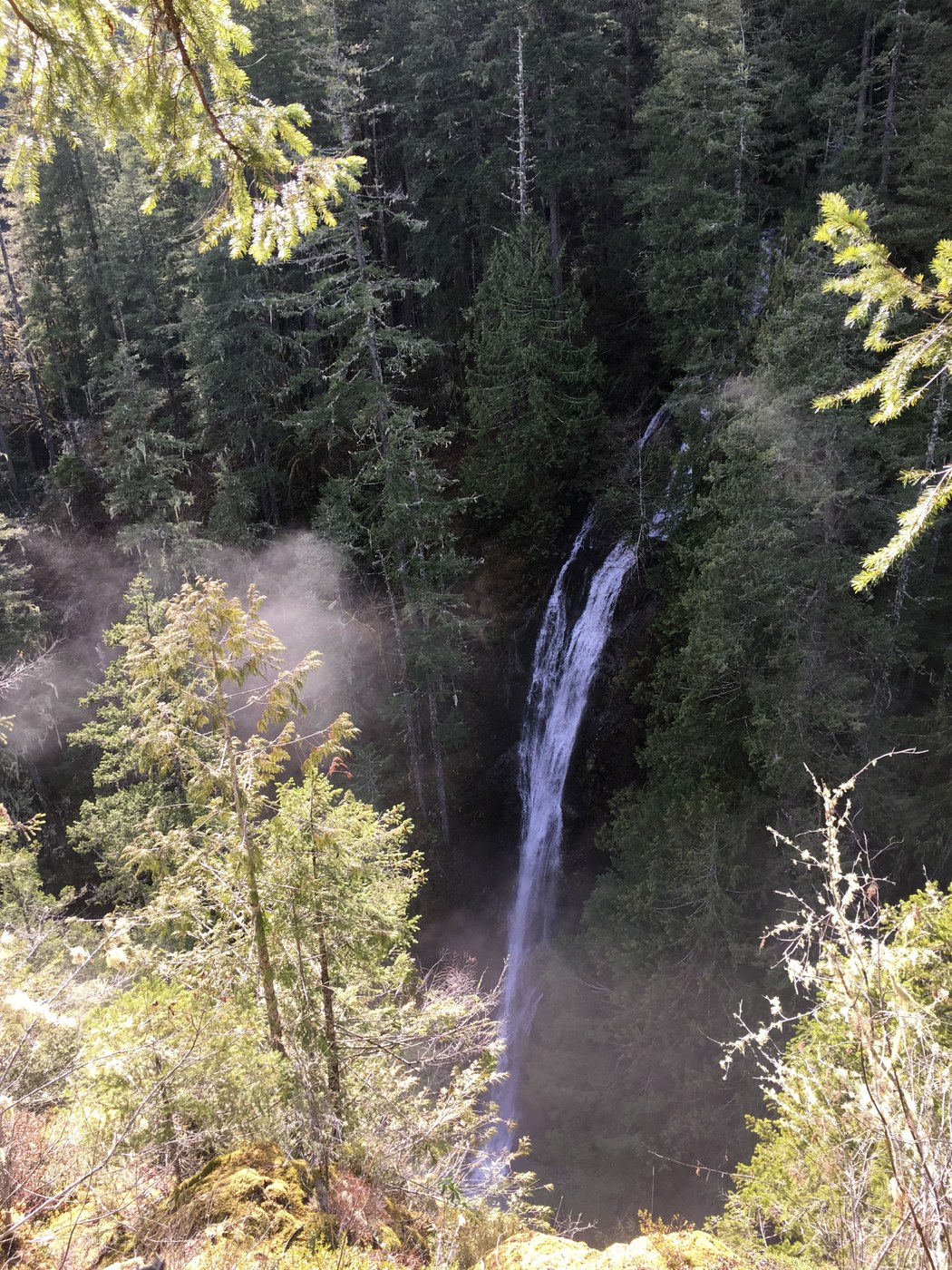 Out to smell the trees and look at the waterfall. When all other trails are inaccessible due to snow on the road this is always available. The biggest danger on this "hike" is the wet leaves on the pavement. Parking lot (entrance to the closed National Forest campground) is small and gets filled up on weekends and holidays.