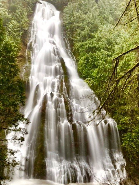 The waterfalls were magnificent and flowing hard from all the rain. There was some downed trees, rocks from a recent slide and lots of puddles on the trail. Road up had big potholes too but my Rav4 was fine. What wonderful hike this is, lovely and one anyone can do with such low elevation gain.