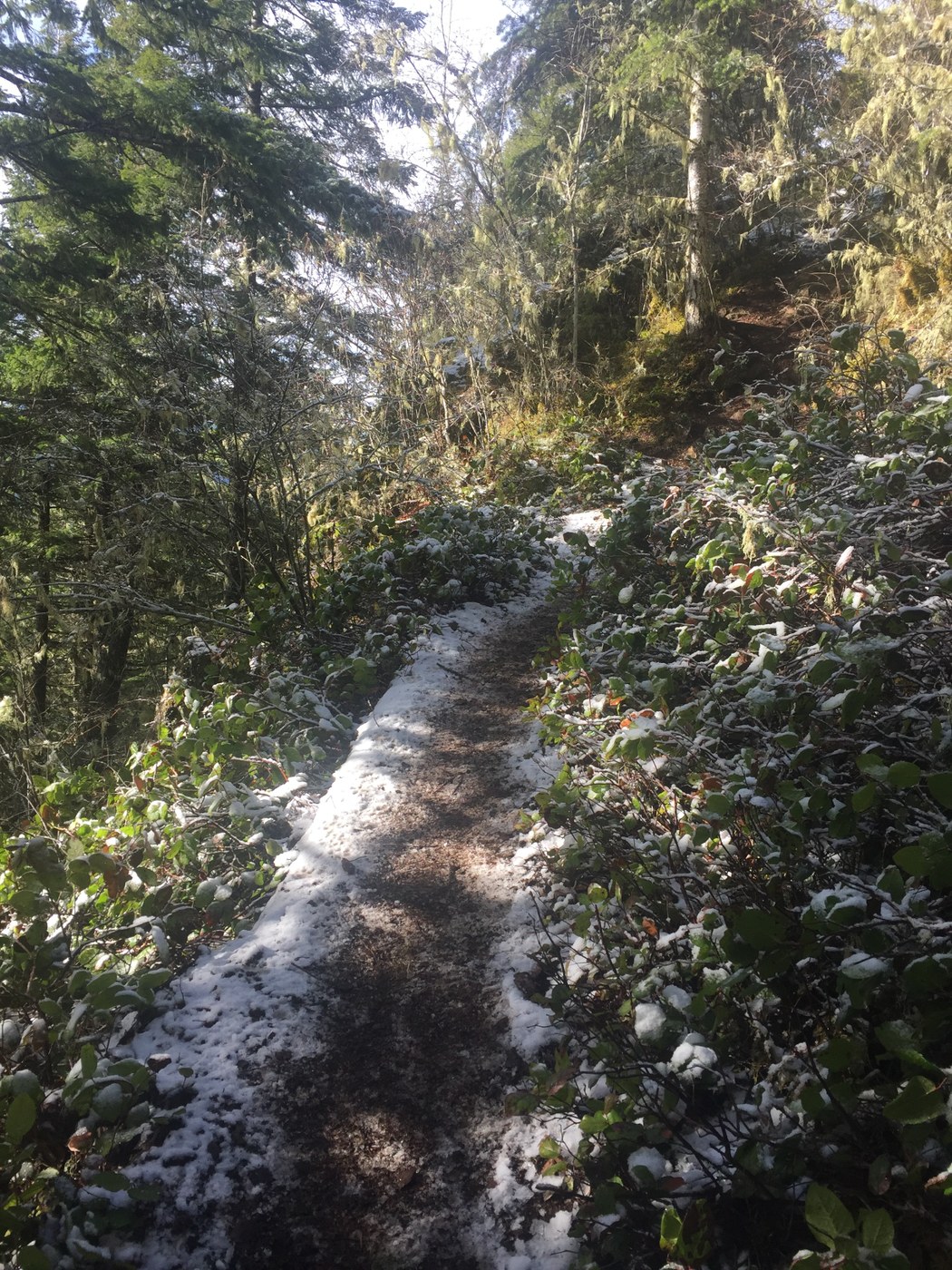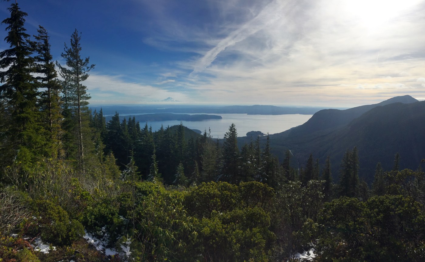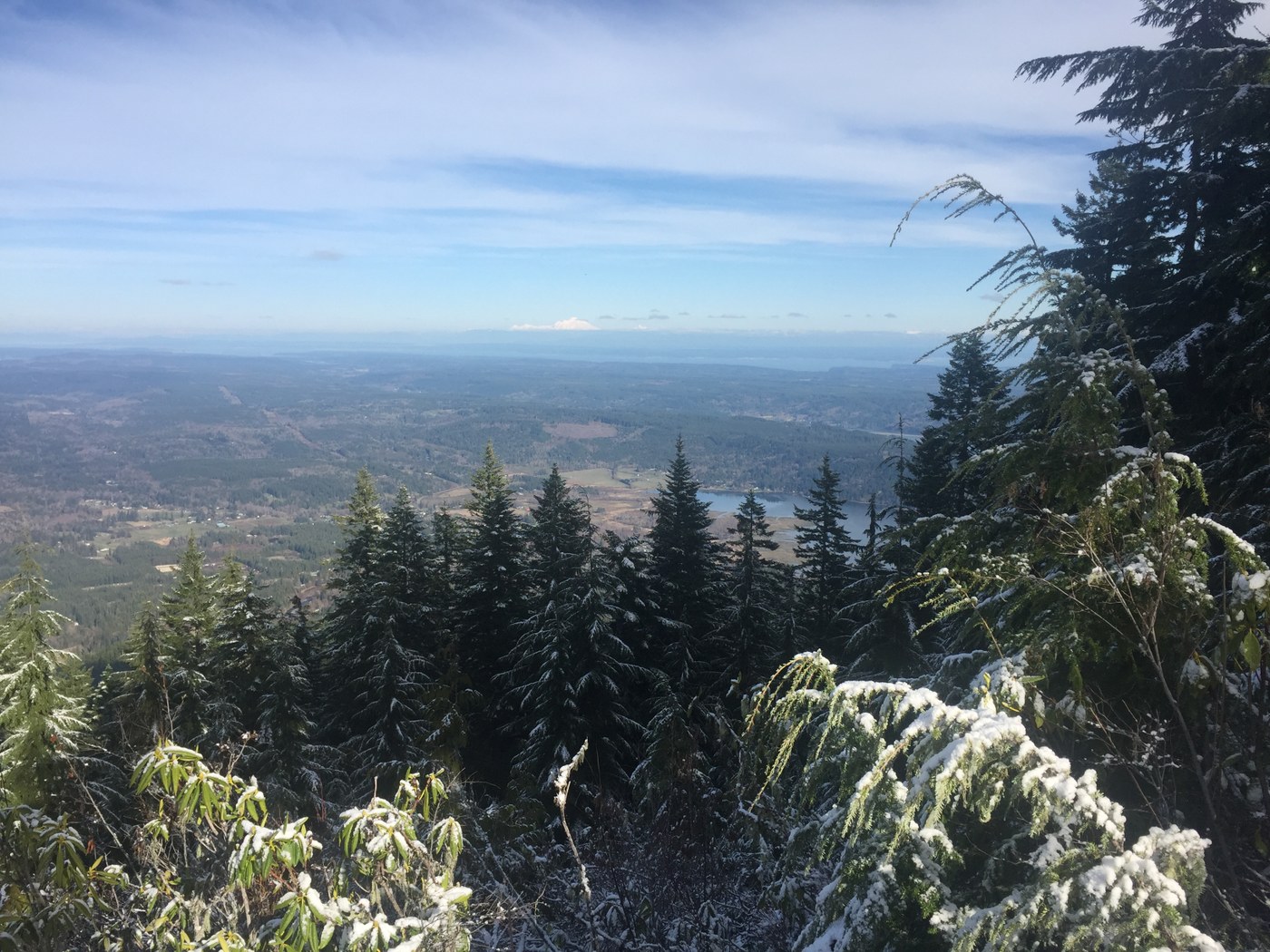 Because the entrance gate is closed to vehicles for the winter, we parked on the main road and walked about a quarter mile beyond the gate to the trail head on right. We hiked this trail on a randomly beautiful and sunny/clear day, so the views at the top were incredible. The north viewpoint offers views of the snow-capped Olympic mountains in one direction and Mt. Baker in the other; from the south viewpoint you'll see across Puget Sound to Seattle and Mount Rainier. No picture can do this view justice. We took the trail both ways and encountered only a bit of slush/snow just before reaching the top - we felt totally comfortable in hiking boots without spikes or poles, though on the way down we did have to be a bit careful with our footing in a few slush patches. The trail ends at the north viewpoint and the south viewpoint can be reached by walking about half a mile down a gravel road. We passed maybe two or three dozen other hikers (and dogs!) on the trail, and there were lots of grey jays at the south viewpoint. Overall, a short but challenging (steep!) hike with spectacular views!