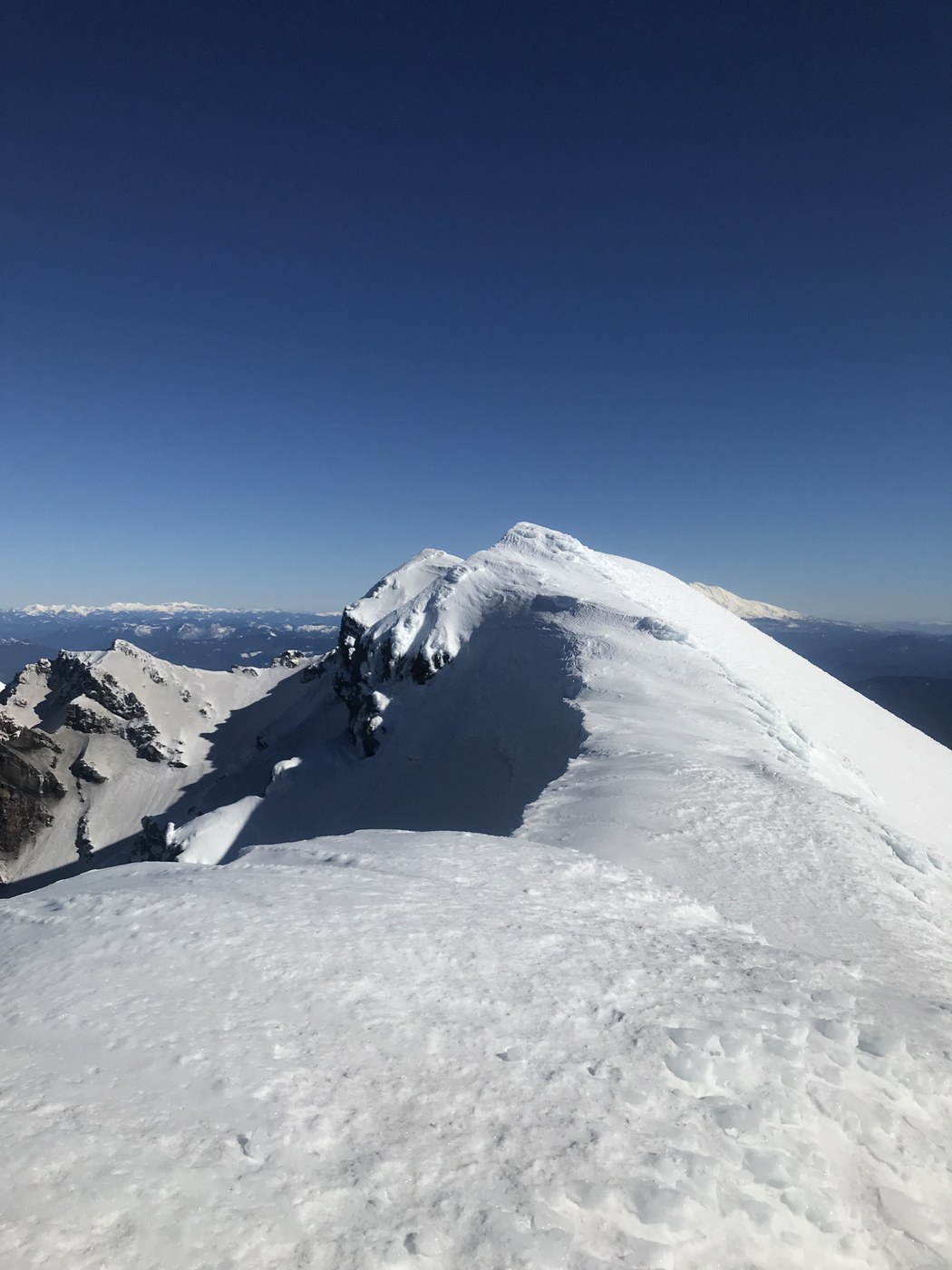 Took advantage of a bluebird day and climbed St. Helens in near perfect conditions. The parking lot at the TH is completely plowed so no difficulties getting there. Left the TH at 7:45. The trail to Chocolate Falls is a nice boot path packed snow, once past the falls you meander through the last of the trees onto the boulders or just throw on your traction device and walk in the snow heading to the summit. With these clear crisp days and nights the snow was hard and crunchy the entire way to the crater rim. I carried by snowshoes all the way to the top and all the way back to the car not needing them. Saw several other climbers and a couple people going up to ski down. Many used crampons, I was able to complete my summit with just microspikes. Reached the crater rim at 12:45 and was treated with spectacular views of Mt. Rainier and the North Cascades. The trip down was unfortunately not good for glissading as the snow was too icy, so the slow walk down to the parking lot. Got back to the car at 5pm. Overall it was a wonderful day that the views were amazing. If you have the skill and knowledge to do a winter summit, skip the permit system fiasco and go when you can avoid the mess.