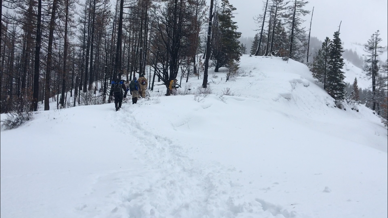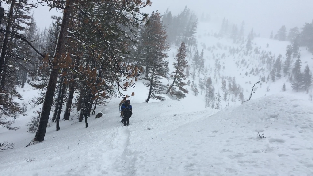 Our group of 5 began hiking around 10:45am on February 17th. to see a short video I put together on the hike with conditions click this link: https://www.youtube.com/watch?v=bppp_yM3yaM There was about 4inches of snow on the ground and still snowing there was a winter storm warning and high wind advisory. Also the yellow gate was closed preventing you from driving all the way to the trailhead so you had about a 1 3/4mile hike to the trailhead. Once we reached the trailhead there was one other hiker ahead of us. In about another mile the winds picked up severely I put on my face mask and gloves. About two miles above the trailhead we met the hiker who had turned around we put on our snowshoes as the snow was very deep but still the wind was the biggest difficultly. About 300ft from the summit and the whole hogs back ridge was extremely windy and was a sheet of ice. We were having trouble moving and getting tossed around by the wind, we estimate the wind was around 60mph. We reached the top of Hex Mountain around 3pm. Once we got back into the trees the wind died down a bit but was still severe. The rest of the hike was a easy down hill hike and we arrived at the vehicles around 6:15pm. Again if you would like to see footage of what the trail looks like click here: https://www.youtube.com/watch?v=bppp_yM3yaM But overall the hike was fun. But I would recommend this to experienced hikers that have access to snow shoes or crampons and are very good with map and compass for there is no visible trail for 6 1/4 miles.