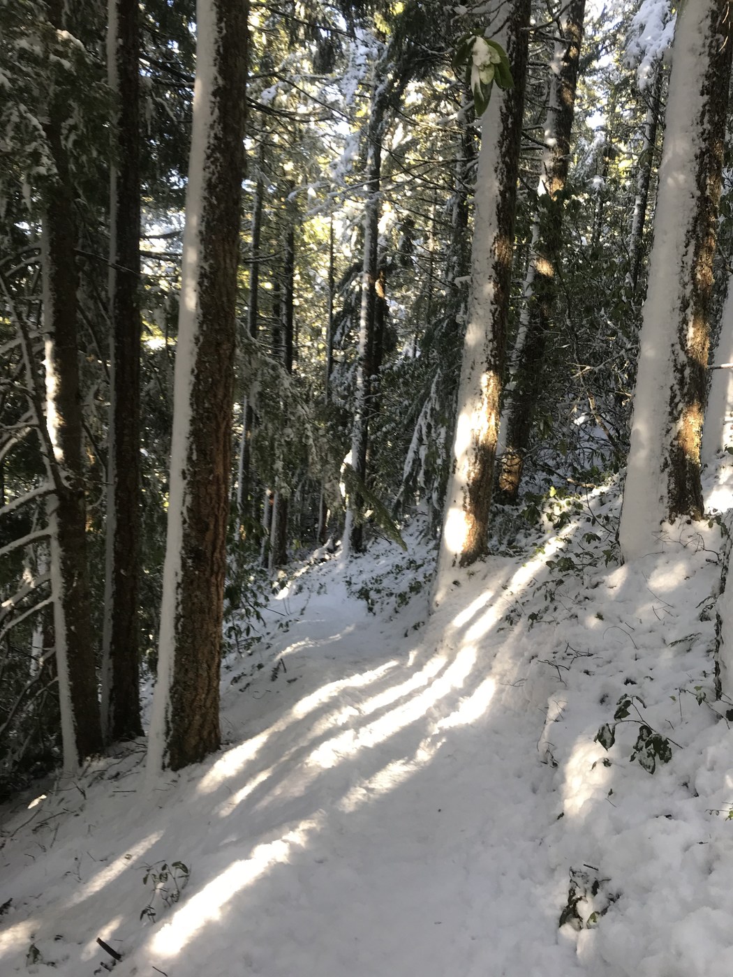 Hit the trailhead around 7:30 a.m. Since the gate is closed I parked on the road and walked past it to the trail (a few hundred yards on the right). I hit patches of snow about 1/3 of the way up and by half way it was covered. Pretty easy walking with boots on however. I wore spikes on the way down since I had my dog who tends to pull. Absolutely beautiful day with clear views from the top!