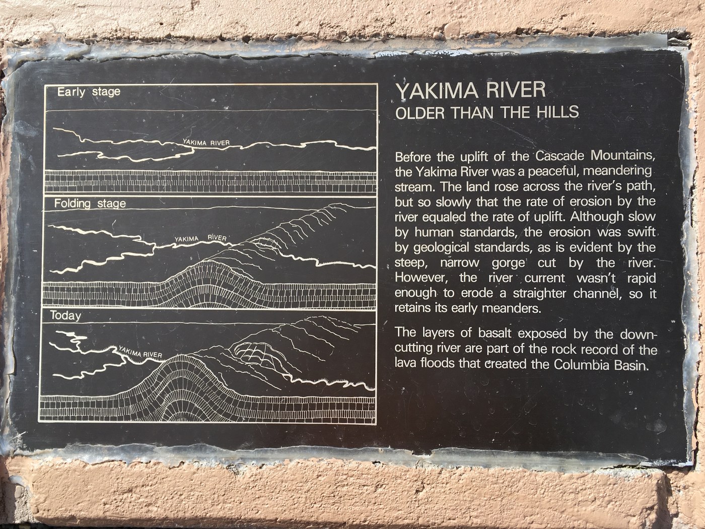 We got a further clarification on the mysteries of the Yakima river when we stopped at the Beck monument south of Umtanum Recreation Area. Apparently the uplift making the ridges was slow and the meandering river eroded it gradually, without being displaced.