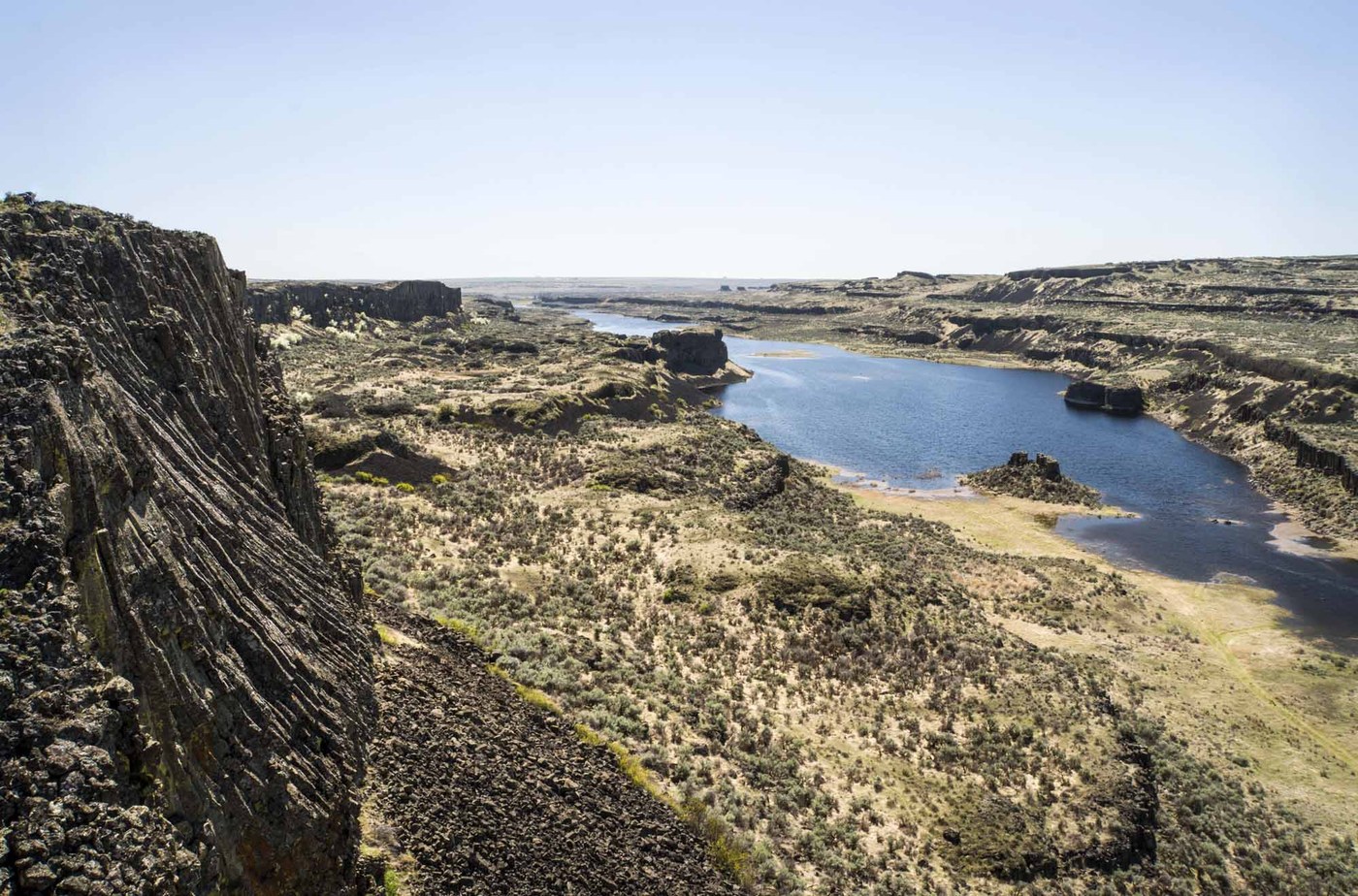 I led a Sagebrush Ramble Campout for the Cascadians to the campground at Lakeview Ranch near Odessa Thurs to Sun. Many of the lakes in this area, including Pacific & Bobs Lakes, have been dry for at least a decade due to a lowering of the water table by agricultural wells, but with the very wet spring in 2017, Pacific Lake had water, so we didn’t know what to expect. When we arrived, we found that the lake not only had water, but was quite full. After having lunch & setting up camp, we drove over to the Odessa Craters and hiked both the Cache Crater and the Odessa Craters Loop Trails.