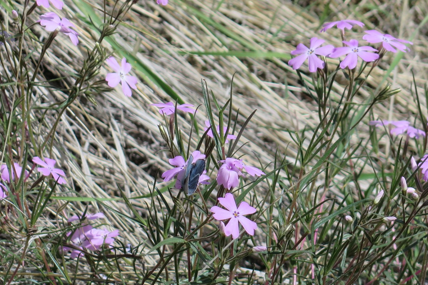We did see eagle, raven and osprey hunting. There is active beaver activity and one of the trails runs right next to a current, small beaver dam/pond. A few wild flowers out, pink phlox(?), balsamroots, and little purple flower which I believe may be "Nuttall's Larkspur". All in all a lovely walk through a beautiful creek canyon filled with sticker bushes and dozens of rattlesnakes.