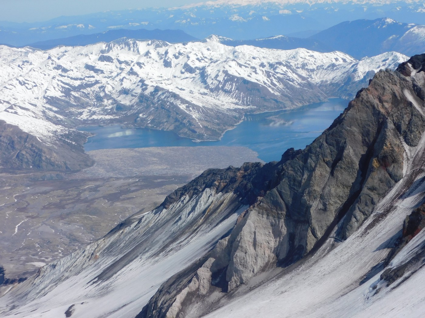 Took a spin up Mt. St. Helens on Thursday, clear and relatively hot conditions. Snow begins at the TH, and on this day did not really freeze up ON. Conditions fairly unpleasant to the ridge, with postholing and just general inconsistencies. On the ridge, the wind picked up a bit which made for better snow. This didn't last long, the upper slog was again inconsistent. Carried the snowshoes up, lol. . . . Regardless, it was a beautiful day in the neighborhood and not having been here in 20+ years, spectacular to see it was still spectacular. Mash potatoes on the way out.