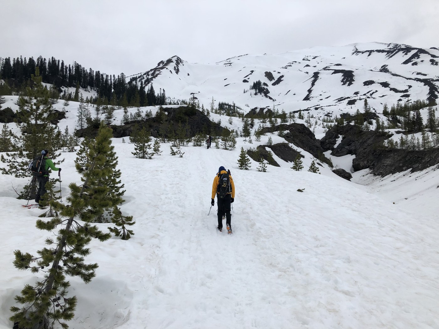 Skinning even with ski crampons is very cumbersome past Chocolate Falls. The snow is soft and slushy so you slip around, even if making your own switchbacks. We bootpacked after Chocolate Falls all the way up to the top.