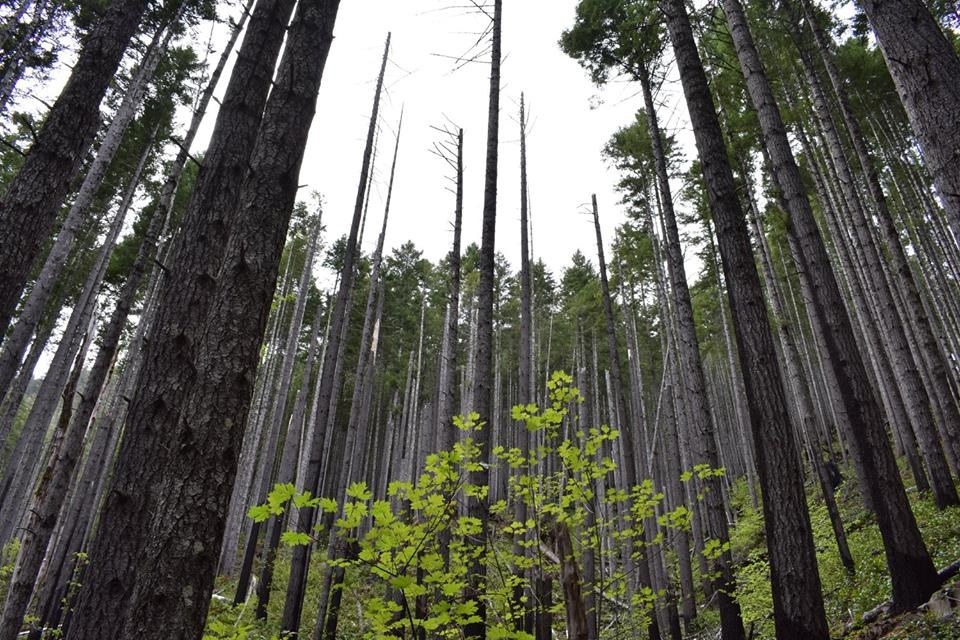 The trail was as described and on the way up I heard the wind in the trees, a few birds up in the trees and the deep, low, pulsating sound of several sooty grouse mating calls.