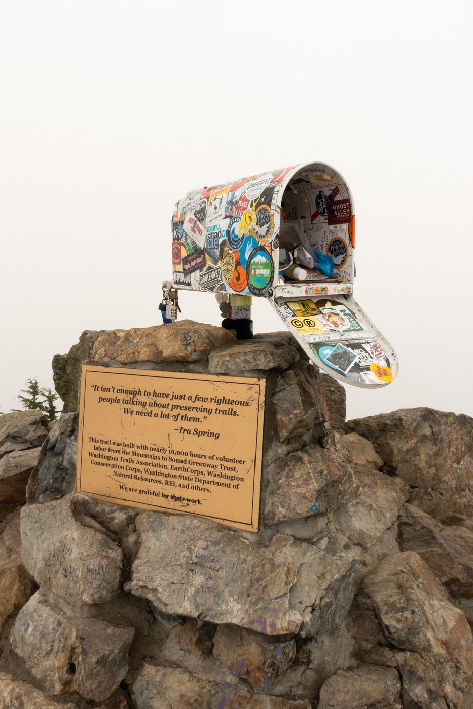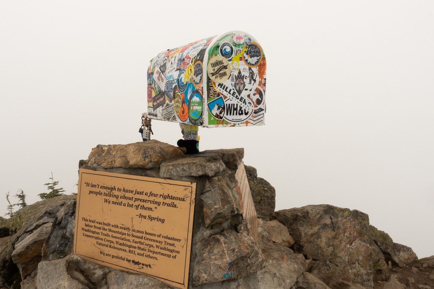 I wasn’t really feeling it today and wanted something short so to the mailbox it was. I arrived to an almost full upper parking lot just before 7:30am. I was a bit surprised given the weather (i.e., no view). This was another training hike for me so I wore climbing boots and a 41.2 lb pack. The trail is in great shape for the old trail. The snow is gone and there was no mud to be found. The trees still try to trip you with their roots on the way down but that’s to be expected. There are a lot of mushrooms popping out of the ground so that was cool. I made it up to the summit in 2 hours and 6 minutes without stopping and not eating or drinking at all. I drank a little of the iced latte I brought up at the summit and dumped out 18 lbs of water and headed right back down, only spending 6 minutes at the summit. There were a LOT of people coming up as I was heading down and two people had music playing out of their backpacks giving me flashbacks of Rattlesnake Ledge. My trip from the summit to car took me 1 hour and 34 minutes, including one stop to photograph a mushroom and numerous stops to give the right of way to uphill traffic.