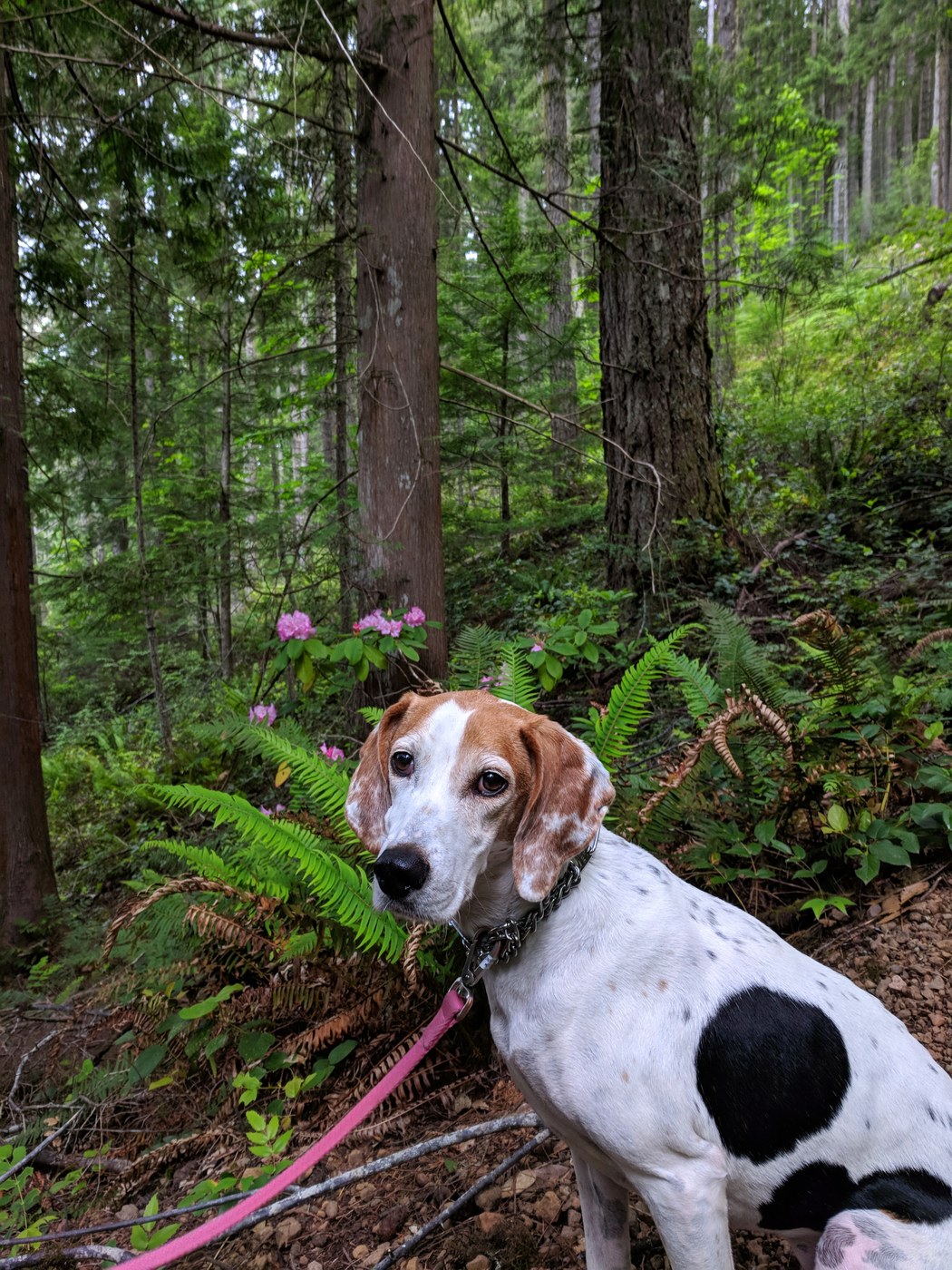 Seeing all of the rhododendrons along the trail made up for the steepness and the bugs. Nice view of the Olympics from the north lookout, but we didn't go to the other one since it looked a bit hazy and cloudy back toward Seattle. I don't know that I'd do this one any other time of year, but it was lovely with the splashes of pink flowers among all of the greenery.