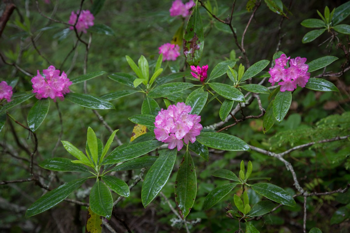 Sharing a trip report because I think the native rhododendrons along the trail are darn near their peak! They don't all go at the same time, and some are already past, but the entire trail was filled with bright open blooms. It didn't look like many were yet to bloom; most were open. So, if you want to see the rhodies, it's a great time to go.