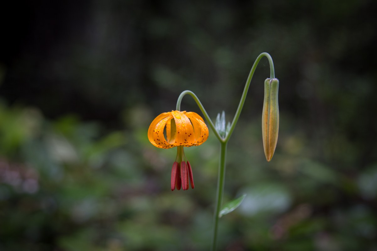 We went in the rain, carrying our 45 lb packs to train with, and the grandparents and our toddler came along too. The toddler rode with grandpa most of the way, of course. Note the tiger lily blooming along the road near the beginning of the trail. It was a nice surprise!