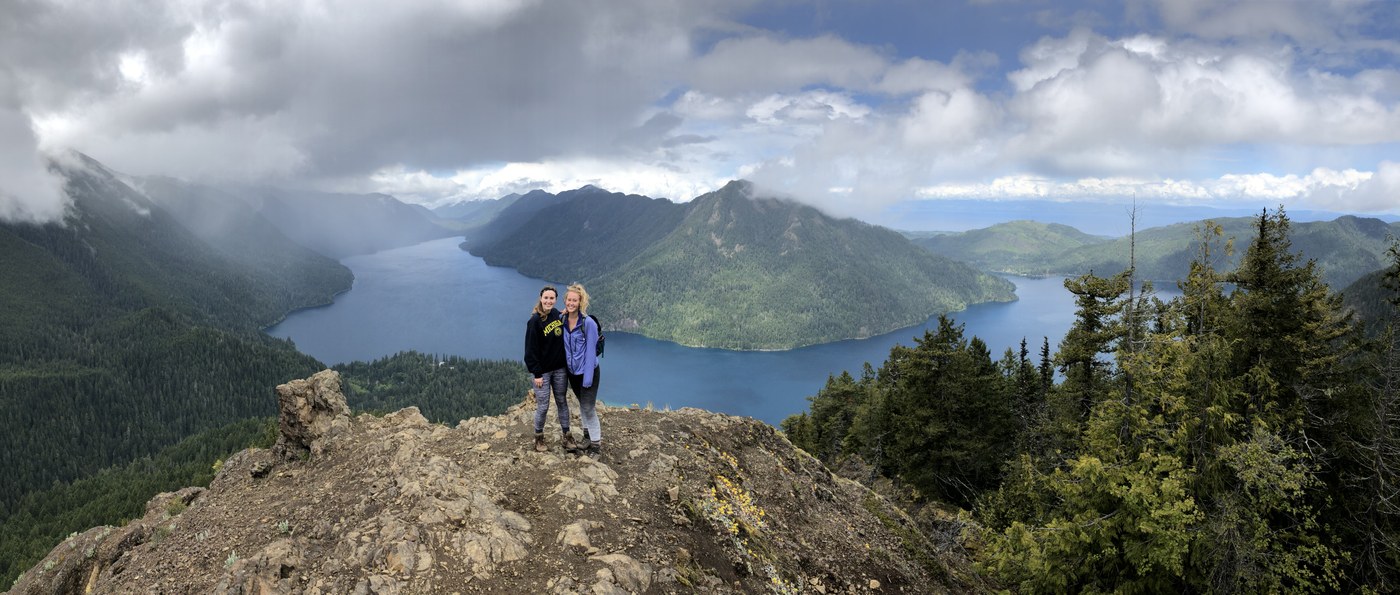 This elevation gain is no joke - as soon as we left the Marymere Falls trail, it was a pretty consistent steep hike all the way to the top. Most of the trail is through a lush forest with a few viewpoints of Lake Crescent below. Eventually we reached the ropes section - I would NOT have done this climb without the ropes as it is very steep with loose gravel in some places. But the rope helps a lot, both on the way up and the way down! (Going down I did have to sit and slowly scoot for the final rope descent). There are 4 or 5 rope sections total - after the last rope, you will reach an obvious "T" in the trail. Turn left here to head to the Mount Storm King viewpoint!