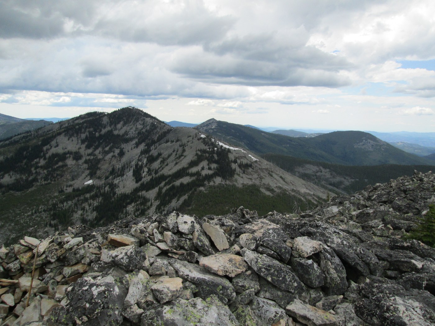 I had read the previous trip report about the trail being impassable because of a landslide of trees. We had been planning on coming so decided to see if we could get through. I am happy to report that between their report and yesterday someone went in with a chain saw and cleared all the trees from the trail, the trail is in great shape for the whole loop. We found the parking across the hiway but, instead of taking the trail down and back up we walked the hiway for about 150 feet and found a connecting trail on the other side of the hiway. The trail goes up for quite a few switch backs and finally meets up with the Sherman Loop trail. We went east or left on the trail. About half way around we left the trail and we did climb to the peak of Sherman Mountain. It is bush wacking without a trail lots of deadfalls and boulder fields. Our great weather turned into a pouring rain thunderstorm so the trail did get a little muddy before we made it back. All the bushes are green and flowers are growing but, not bloomed yet. It was a nice hike minus the rain.
