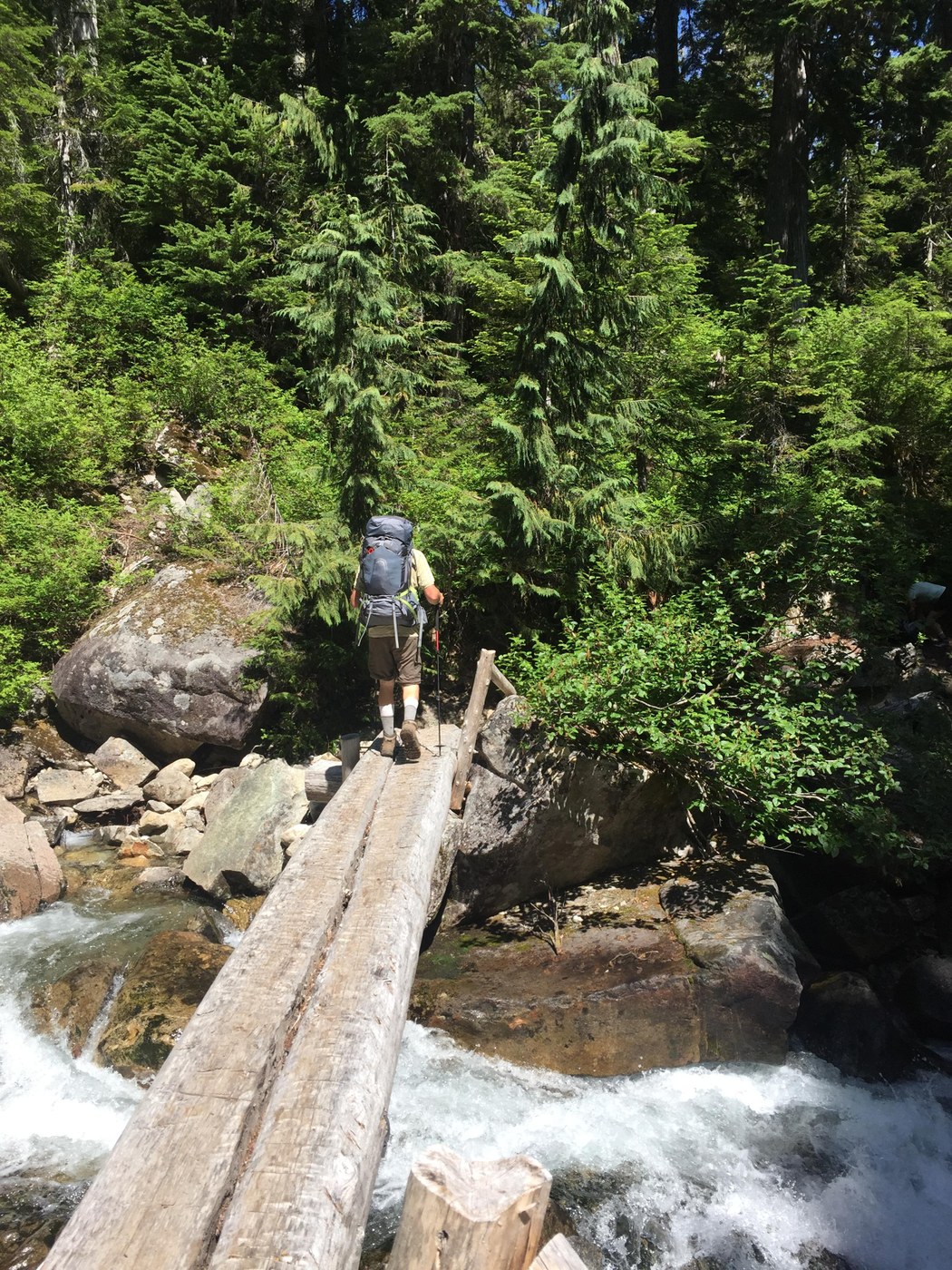 The trail is in very good condition. Some spots are a little overgrown, but some kind people widened a good portion of the trail. First 5 miles is a wonderful and gently rolling trail through the forest. Several campsites we passed were very nice and near the river..not many mosquitoes down here either. The next 2 miles you gain elevation quickly. Some exposed areas so threw on some sunscreen.