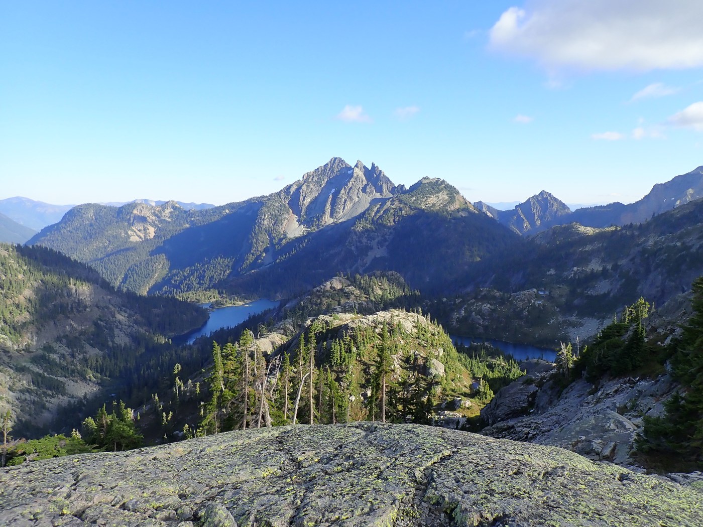 After setting up camp we hiked up to Chikamin Lakes. After the initial rock scramble, we followed the watercourse on intermittent tread until reaching a junction (left towards Chikamin Ridge, right towards the Lakes and the trail down to some smaller lakes that drain into Spectacle) Again, if you are on route you will find sections of boot path (this was a built trail long ago) but you need to be able to navigate. It's steep in places and requires/allows some minor scrambling. One cliffy area we found 3 different "trails" through :)