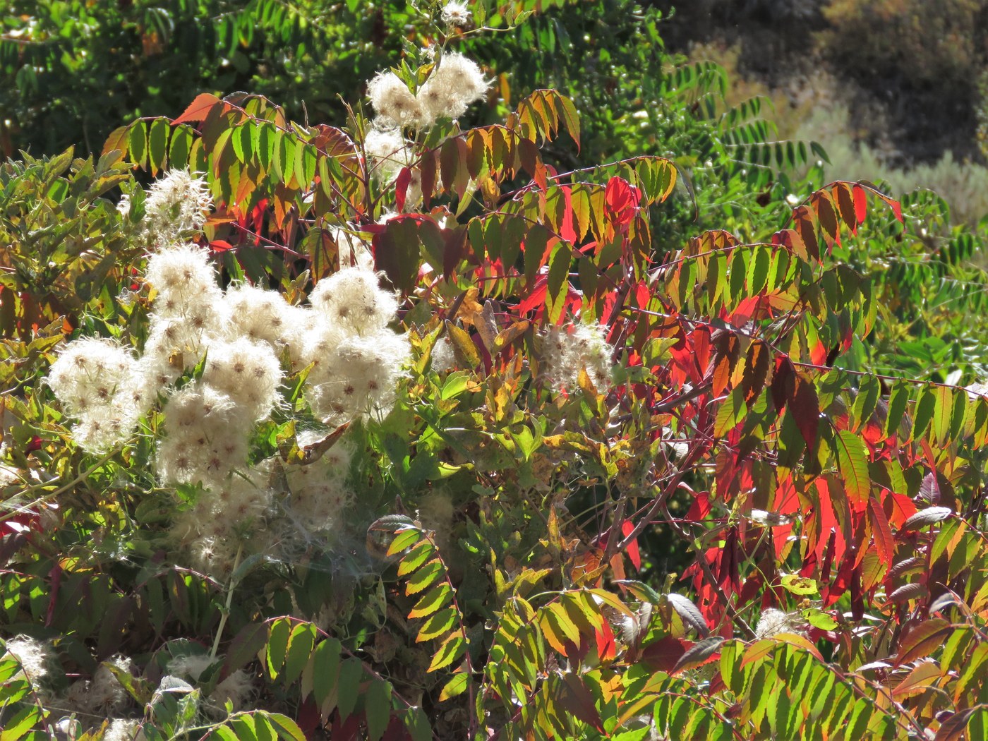 We started at the Scenic Dr trailhead and walked down into the canyon and back. We were a little early for full fall color...last year we hiked here Oct. 8th and the sumac was in fully red. Now it is just starting to turn and rabbitbrush is starting to bloom a beautiful yellow. We saw several butterflies enjoying the rabbitbrush. Although we love coming here for the spring wild flowers, the flowers that have dried are still stiking. It's always a great place for a hike between viewing the interesting rock formations and the plants.