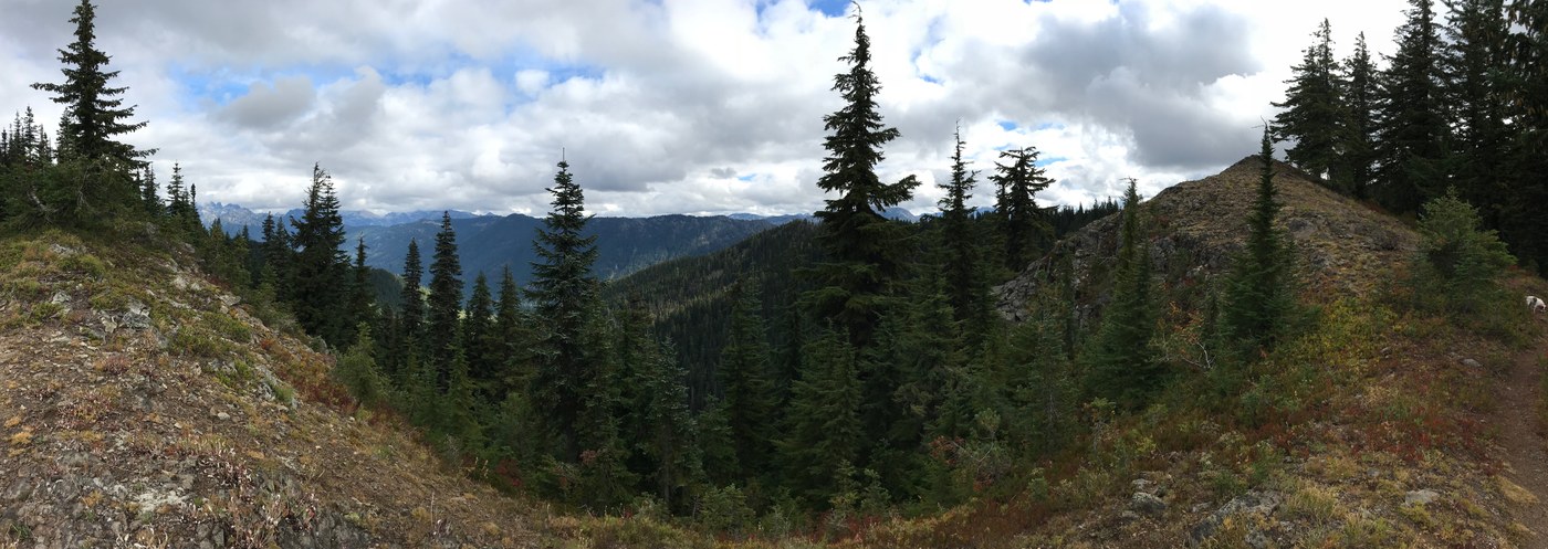 On Friday, we were the only car in the parking lot. There is one stream for dogs to drink from. Views from the top include lakes and mountains all around.