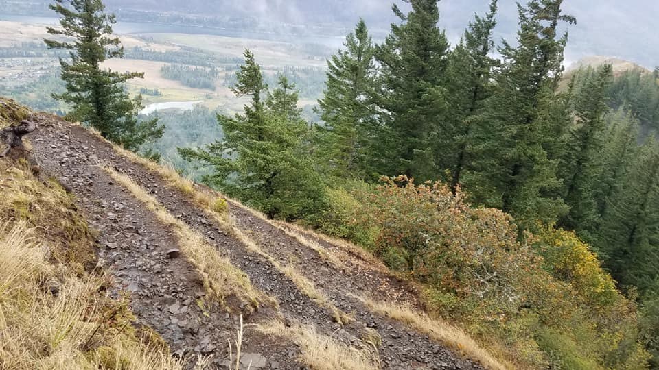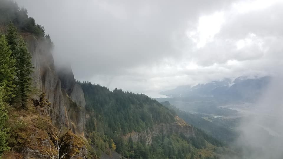 I was really impressed with this trail. There was a lot of good signage throughout the trail and the guidebook was accurate and easy to follow. We arrived at the trailhead at 9:30am to 2 other vehicles in the lot. Got back around 1 and the lots was full - even on a gray, dreary day. The waterfalls were lovely, the trail up to Hamilton mountain was good. Challenging for me, but not too bad. The weather was the biggest factor - the last mile up, we were in the clouds, socked in with no view, rain, and heavy winds that weren't very enjoyable. We still enjoyed some great views on the way up but no mountain tops for us to see today. I would definitely come back and do it again on a better day. Terrain varied from dirt/pine needle covered trail to rocky. Most spots were decently maintained, some stairs built in on the switchbacks. On the way back down, closer to the falls, we passed a lot of hikers - most appeared to possibly just be going to the falls and not doing the full lollipop.
