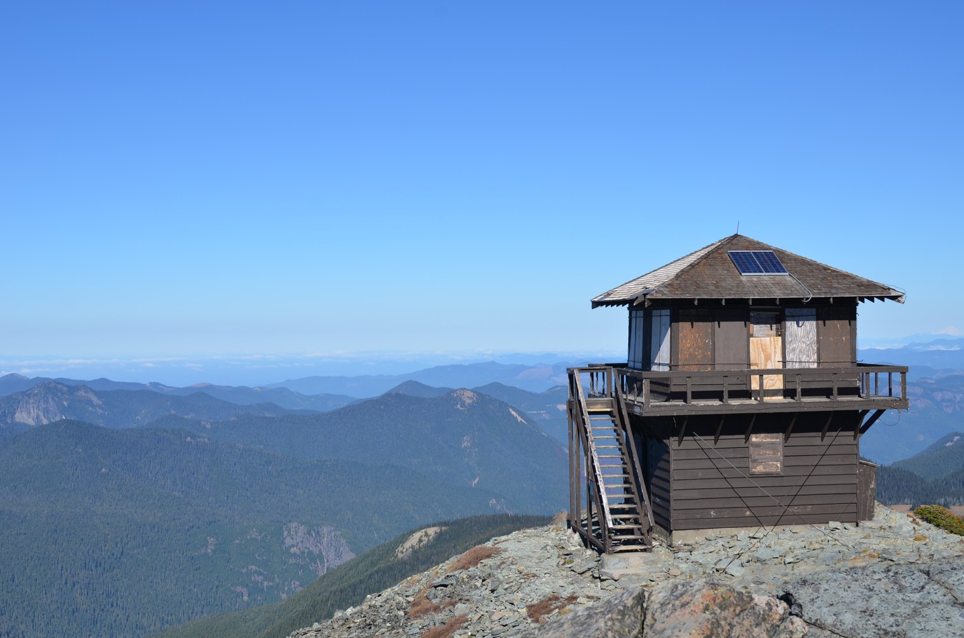 The lookout (and the entire trail) has awesome views of Rainier and the surrounding mountains. Mt. Baker and Glacier were both visible. The lookout is closed for the season, but there are lots of rock outcroppings to sit on for a break. Including stops and lunch, the round trip took under 5 hours hiking at an easy pace.