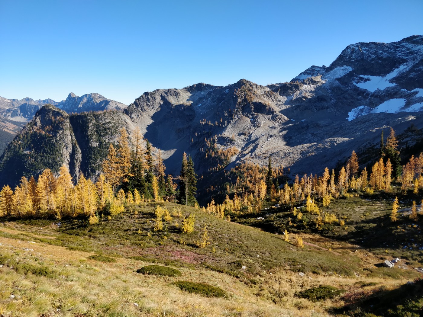 Hiked the Maple Pass loop with my dog to checkout the fall colors. The hike, as many others mentioned, was very busy - however - the vistas on a clear day along with the fall foliage made it more than worth it!
